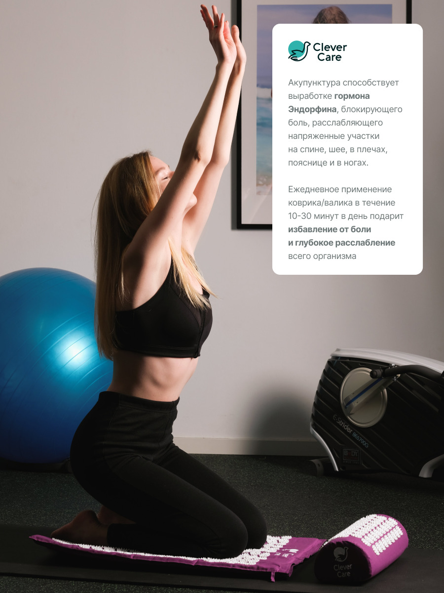 Аппликатор Кузнецова / Массажный коврик CleverCare/ Игольчатый коврик и валик для акупунктуры