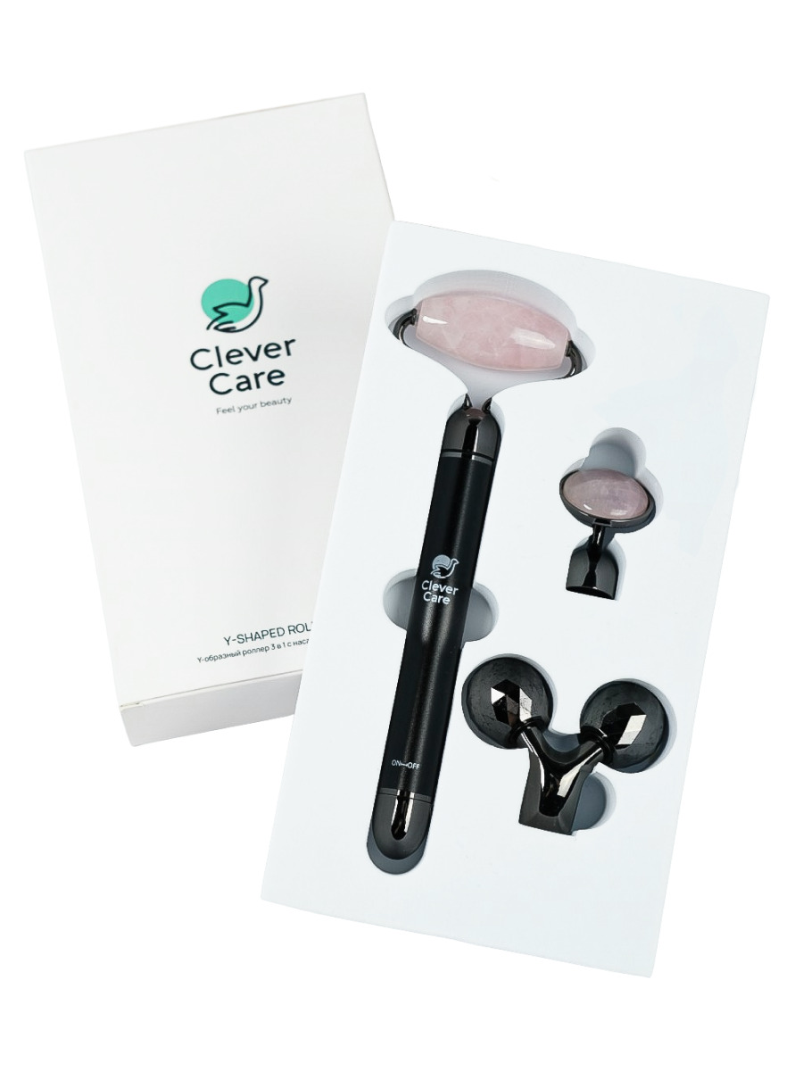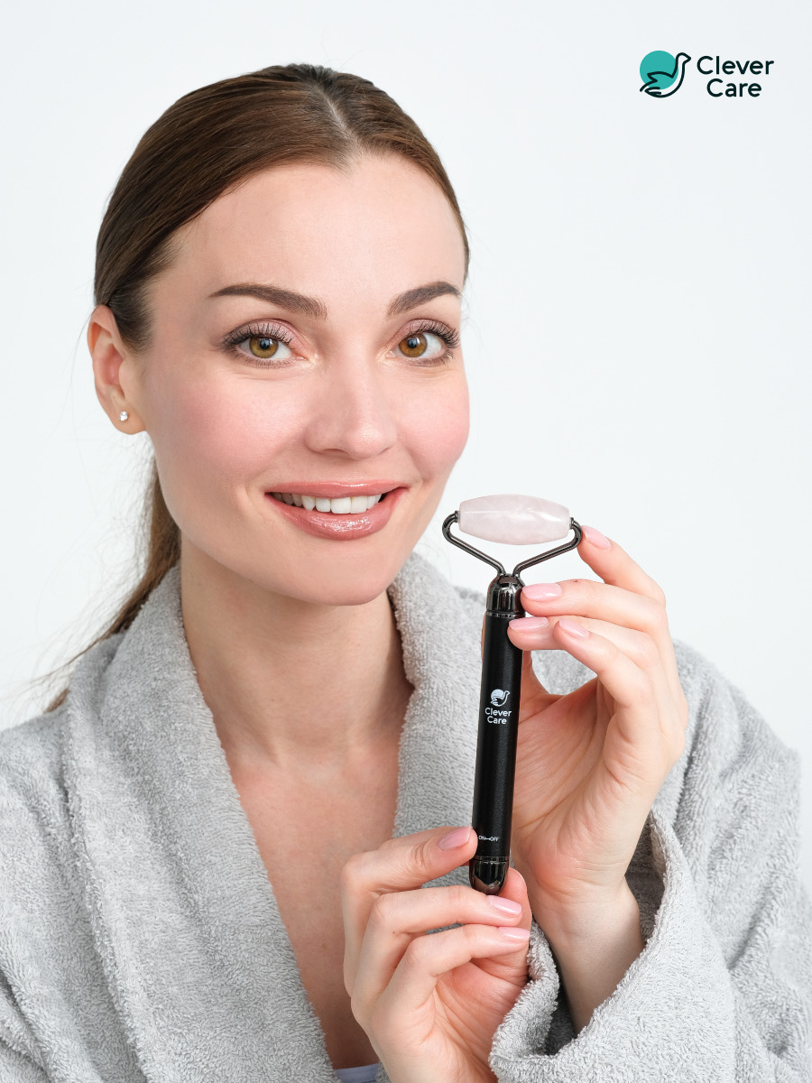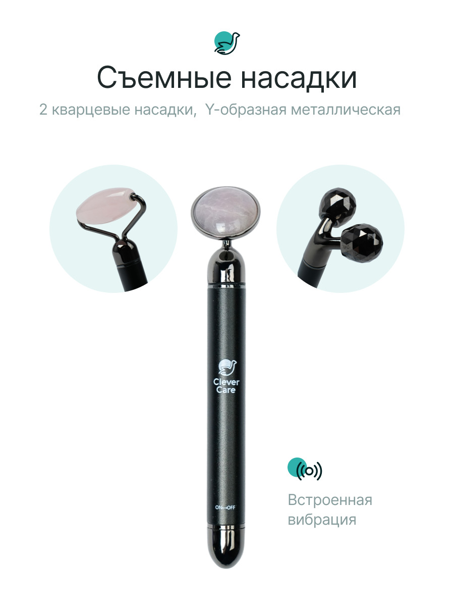 Роллер CleverCare в наборе с 3 сменными насадками, роллер из кварца, роллер для лица, вибро-роллер