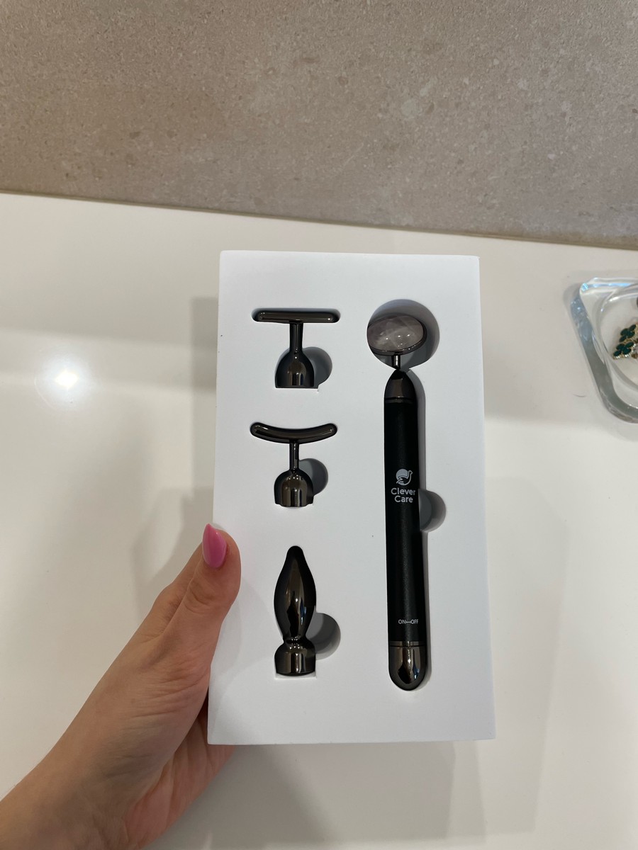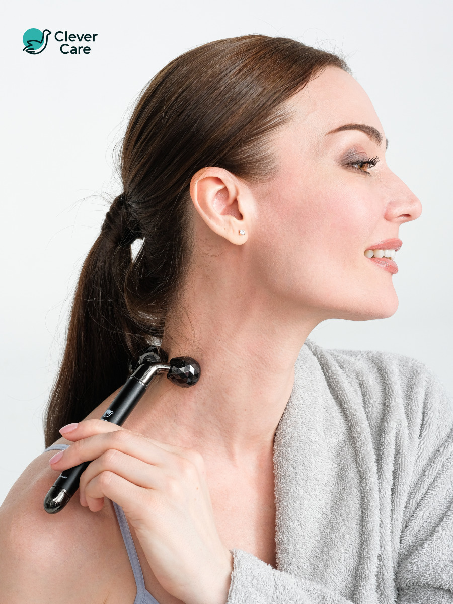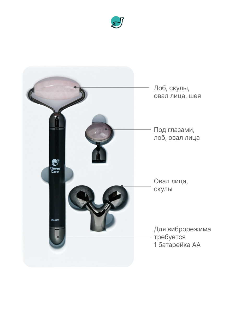 Роллер CleverCare в наборе с 3 сменными насадками, роллер из кварца, роллер для лица, вибро-роллер
