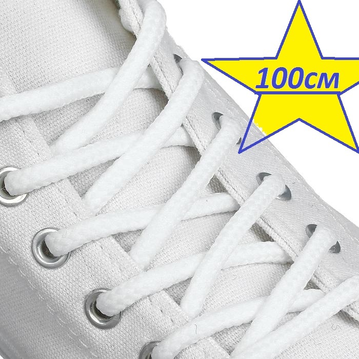 Шнурки для обуви круглые белые 100см