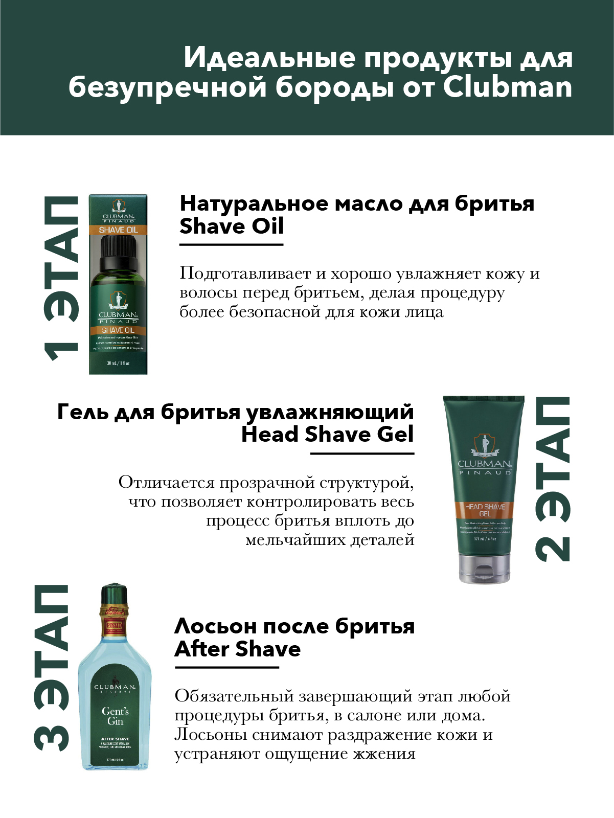 Clubman Head Shave Gel, увлажняющий гель для бритья (прозрачный), 177 мл