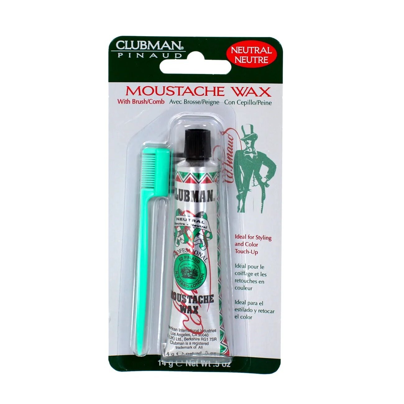 Clubman Воск для укладки и усов и бороды с щеточкой, Moustache Wax Neutral (нейтральный), 14 мл