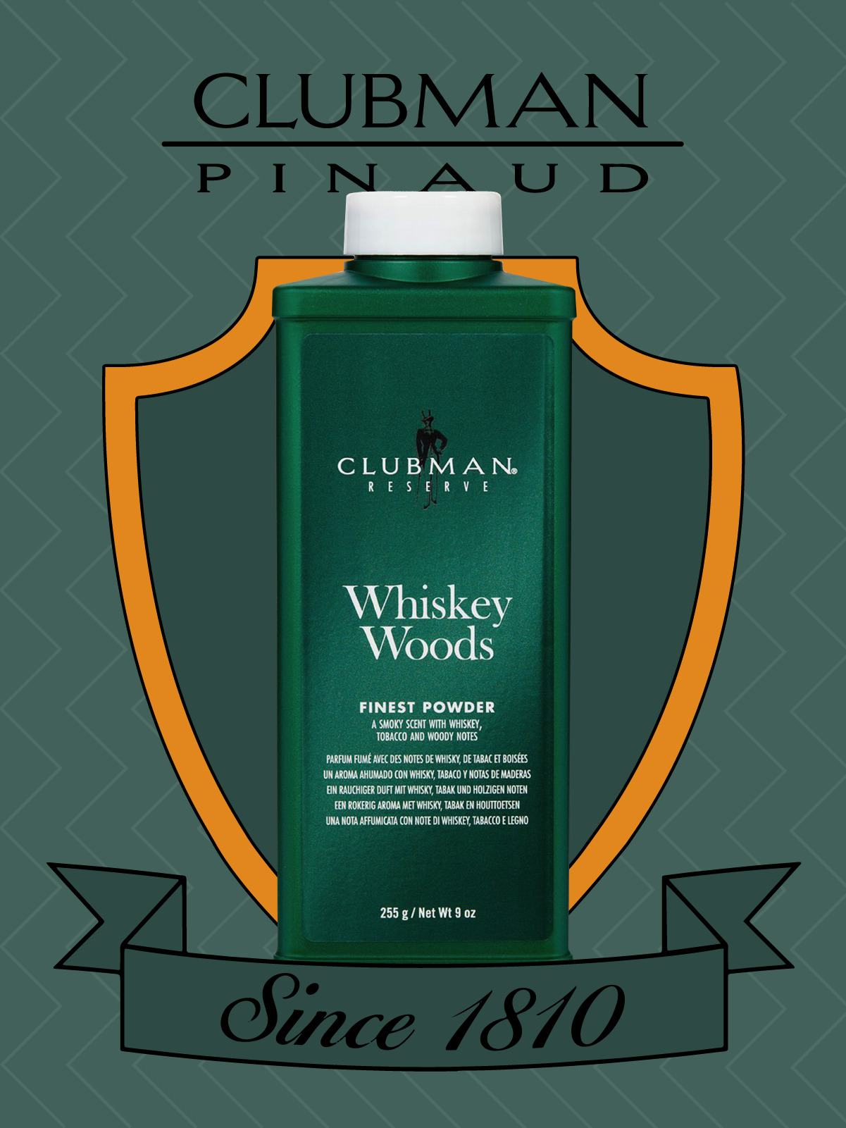 Clubman Whiskey Woods Powder, тальк универсальный с запахом виски, 255 гр