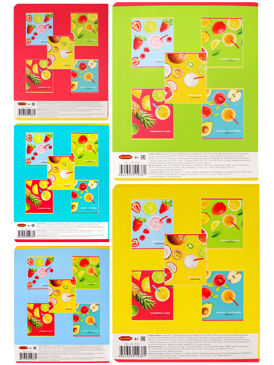 Комплект из 5 тетрадей, Collezione, Коралловый риф, клетка, А5, 48л.