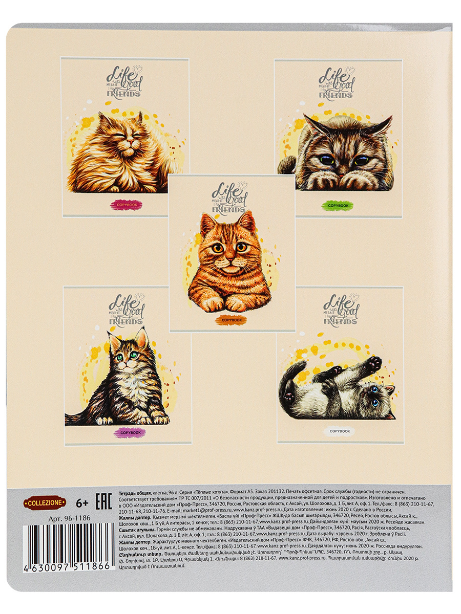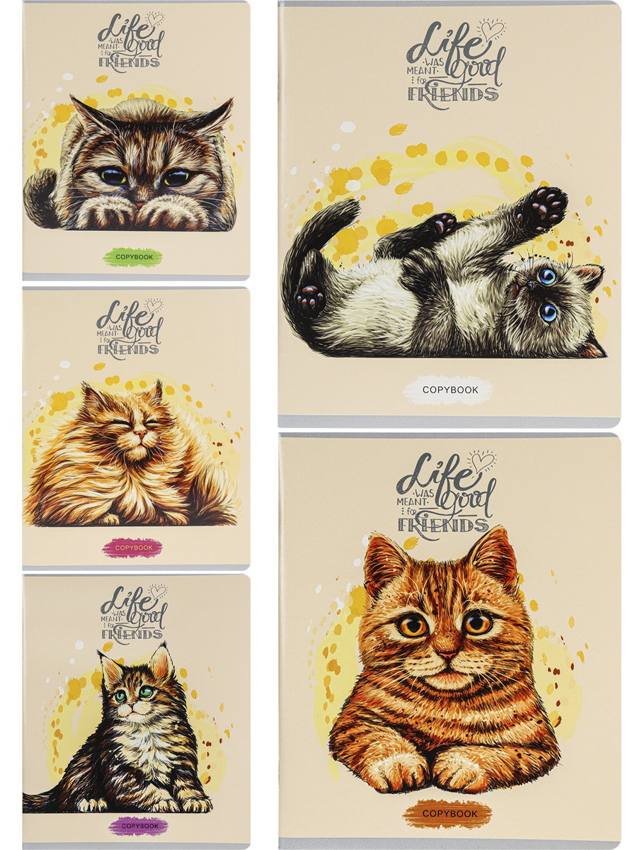 Тетрадь 5 штук, Collezione, теплые котята, 96 листов, А5, цветная мелованная обложка, твин-лак