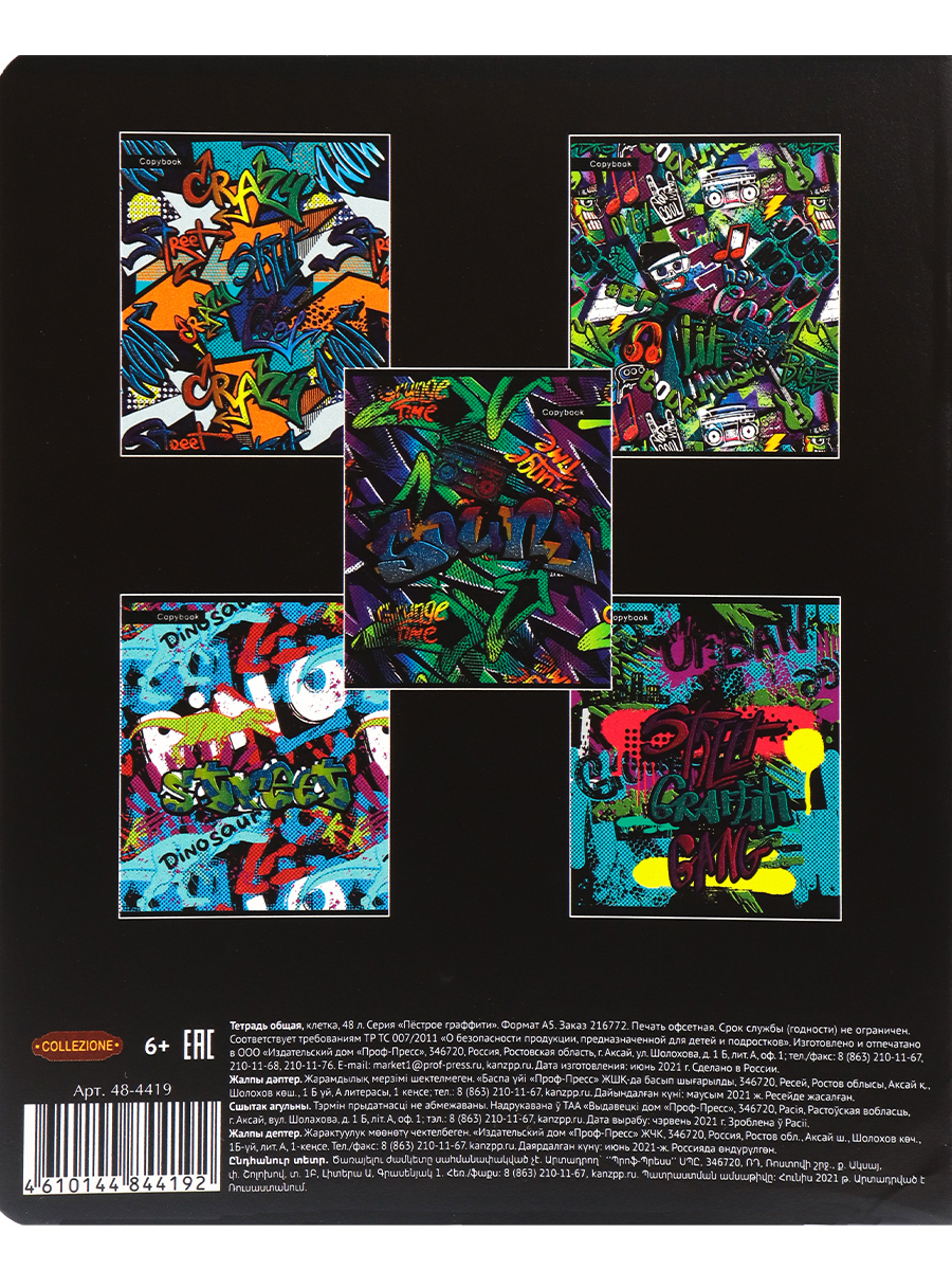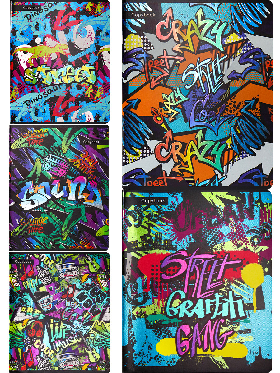 Комплект из 5 тетрадей, Collezione, Пестрое граффити, клетка, А5, 48л.