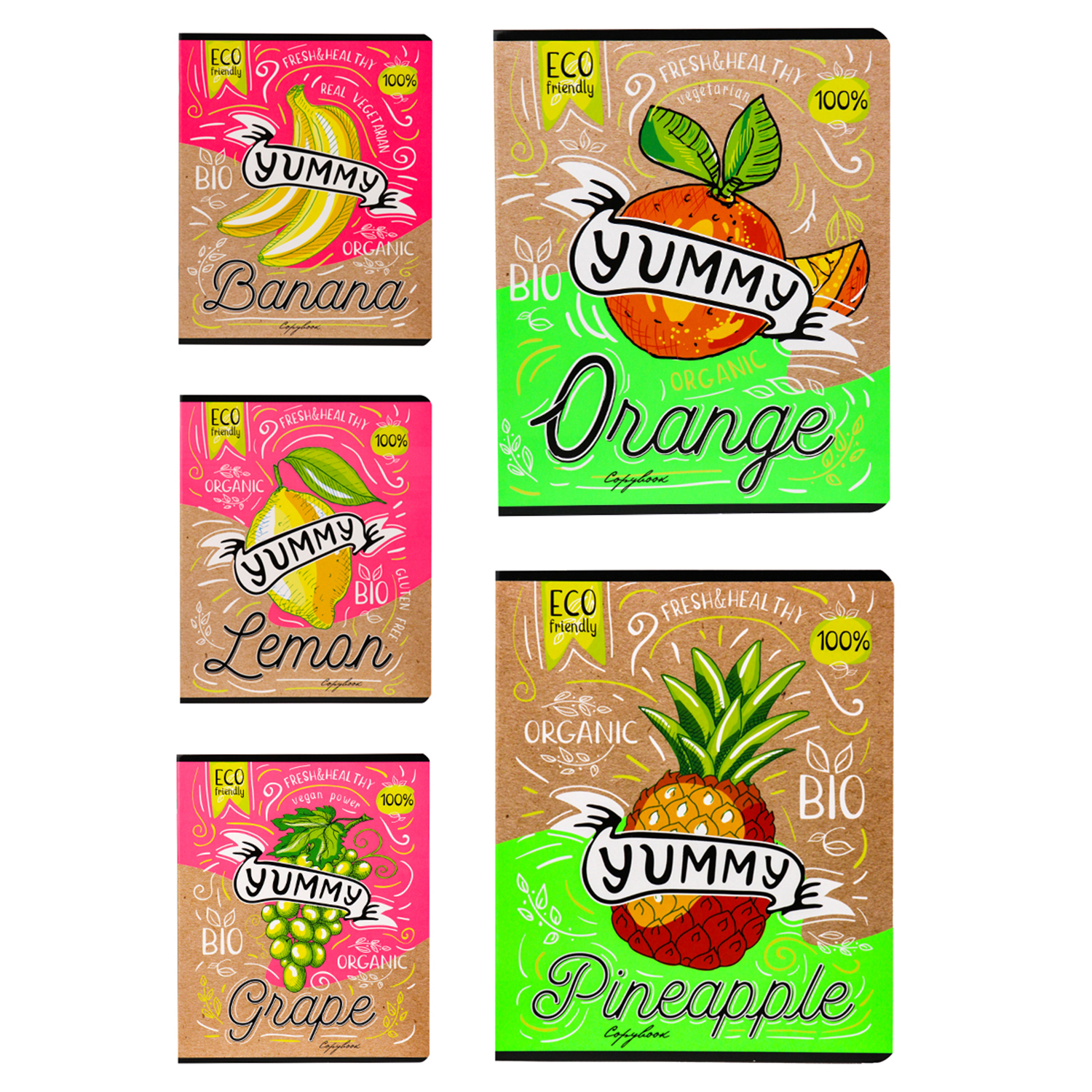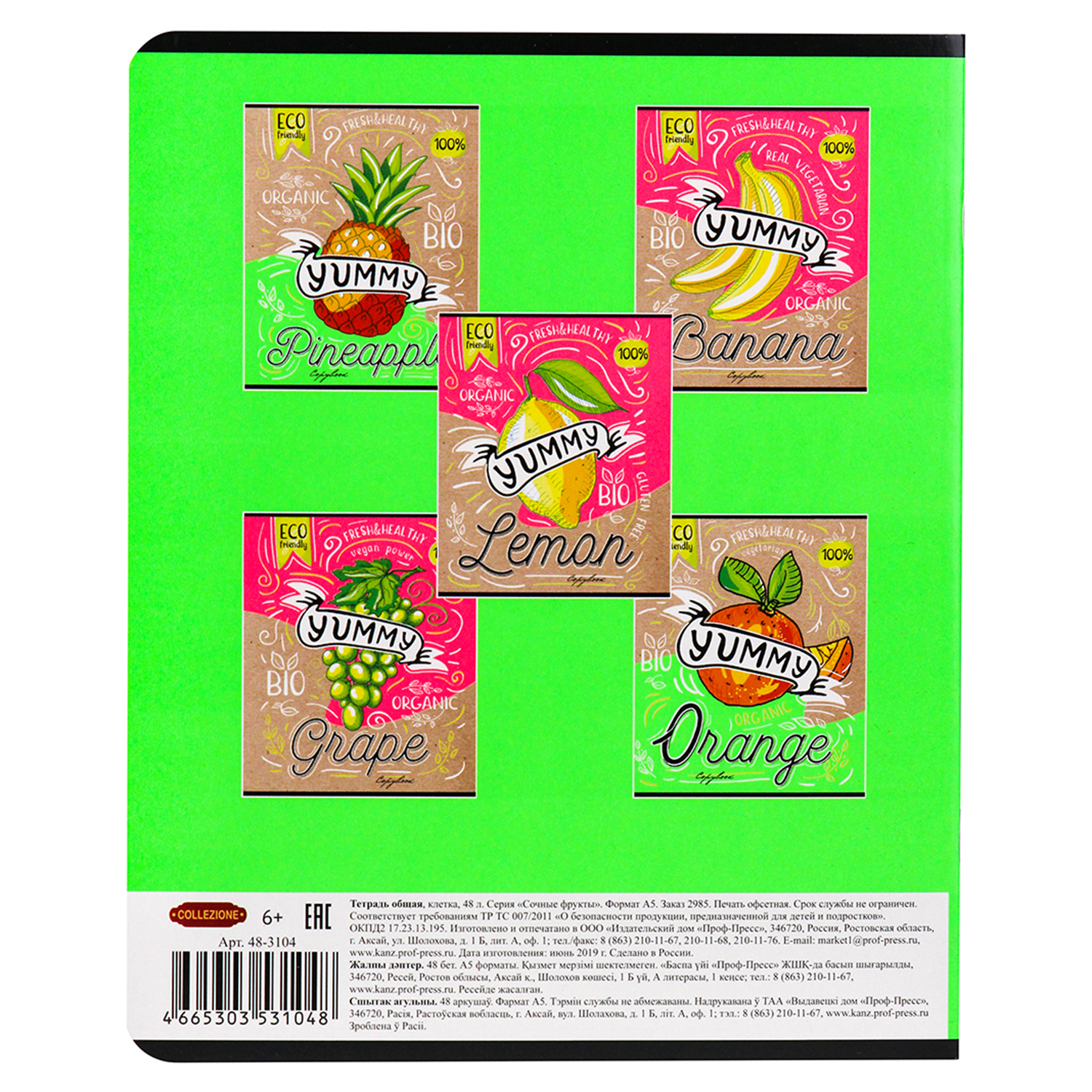 Тетрадь 5 штук, Collezione, Сочные фрукты, 48л., клетка.