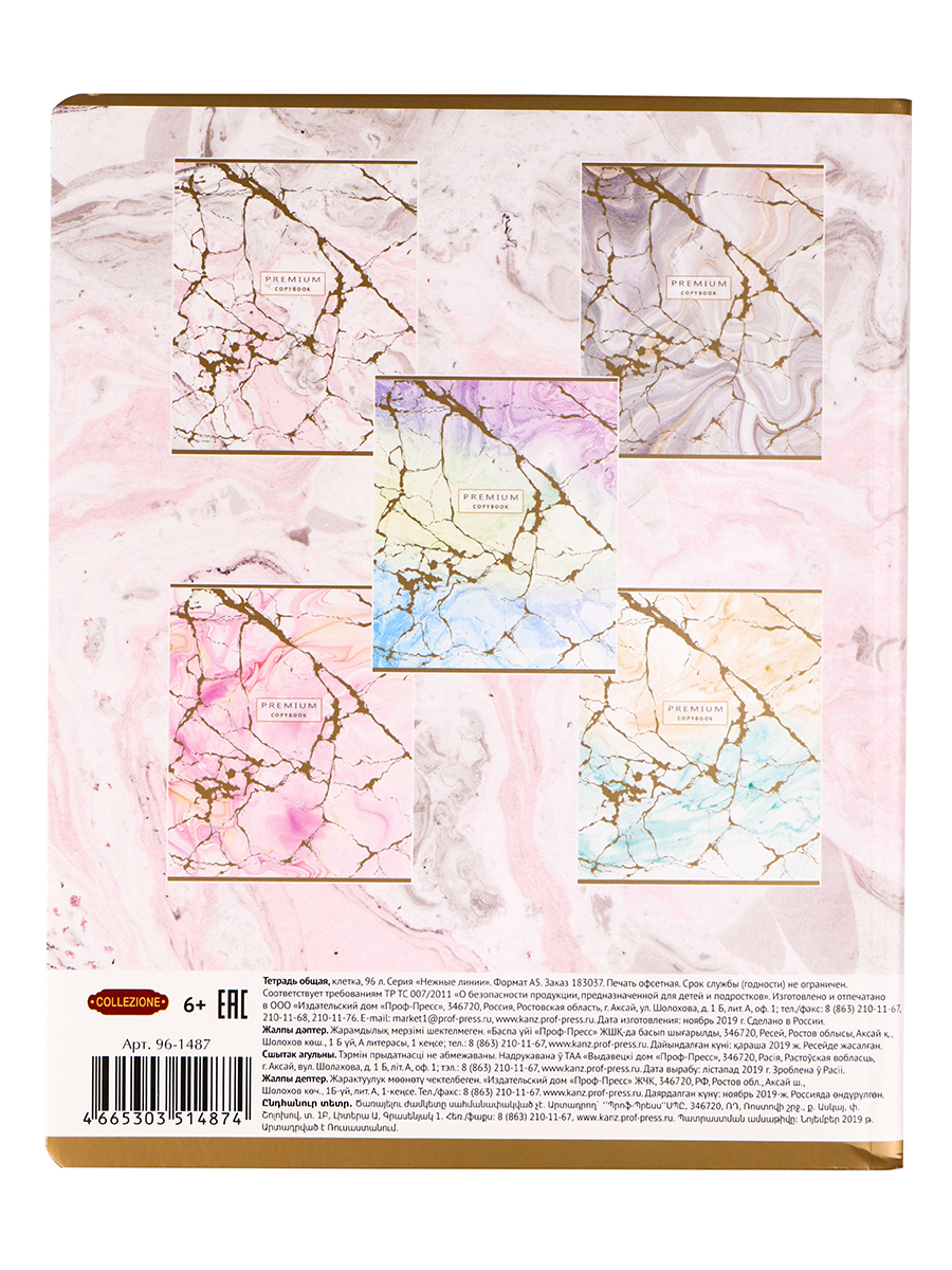 Тетрадь 5 штук, Collezione, Нежные линии, клетка, 96л.