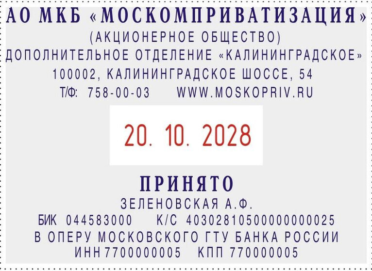 Датер автоматический самонаб.пласт.Pr.55-Dater-Bank-Set дата ЦИФР.6стр.60х4