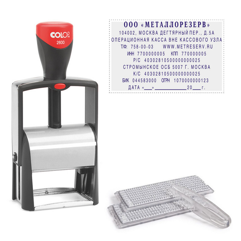 Штамп самонаборный металл. 9 строк S2600-Set 37х58мм 2 кассы Colop