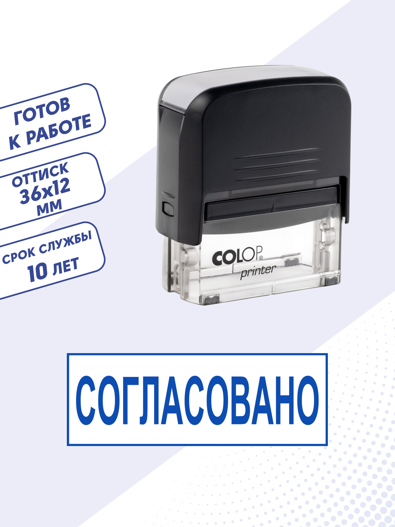 Штамп / Печать СОГЛАСОВАНО, автоматический 36х12 мм, синий, стандартный для документов