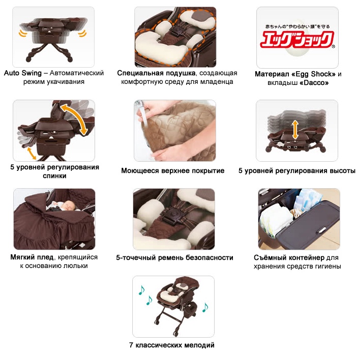 Японская электронная многофункциональная люлька-стульчик Combi Nemulila Beige (от рождения - 4 лет)