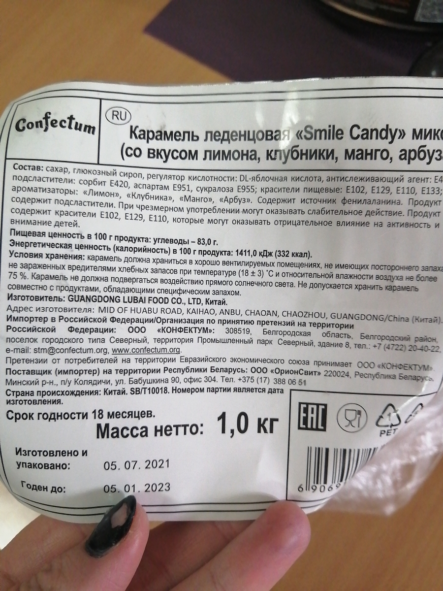 Карамель леденцовая "Smile Candy" микс 1000гр. (со вкусом лимона,клубники,манго,арбуза)