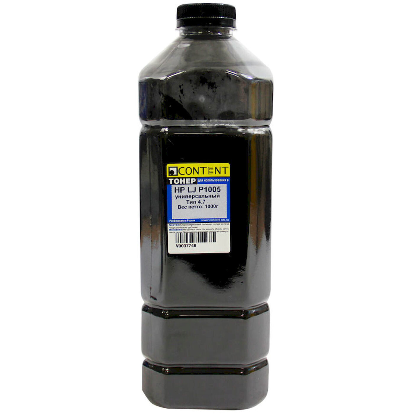 Тонер черный Content Универсальный для HP LJ P1005, Тип 4.7, Bk, 1 кг, канистра (4010715509291)