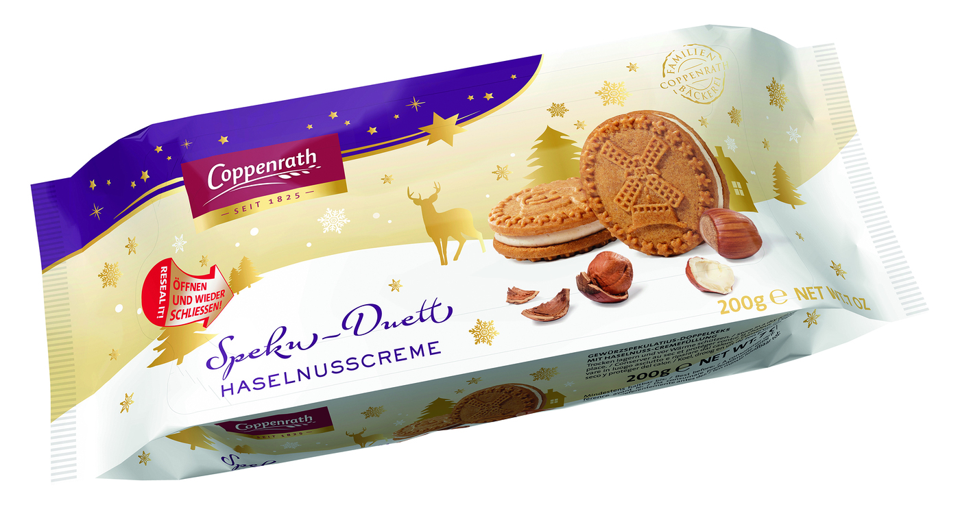 Печенье Новогоднее Coppenrath двойное Спекулос с кремом из фундука, Германия 200г