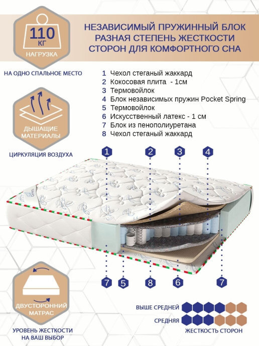 Матрас Corretto Capri, Со сторонами разной жёсткости, Независимые пружины, 140х186 см