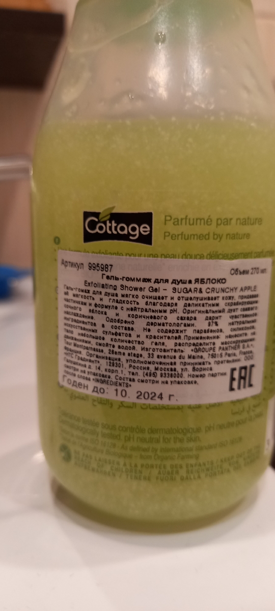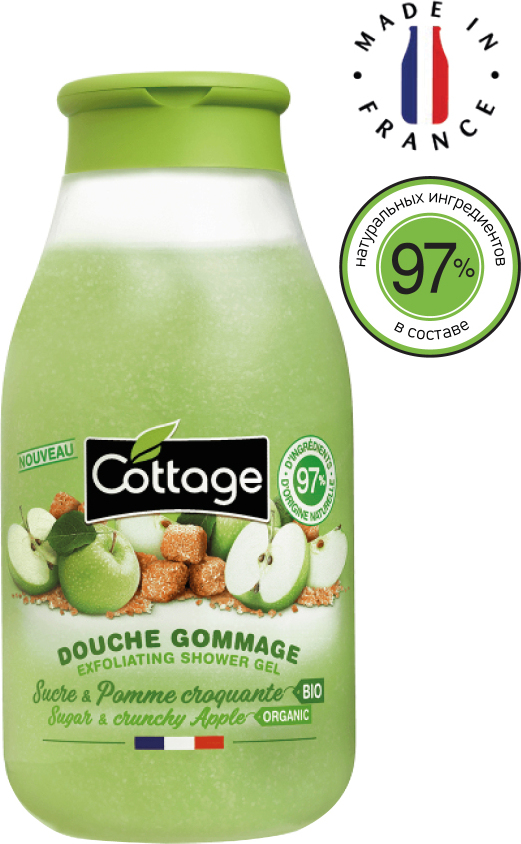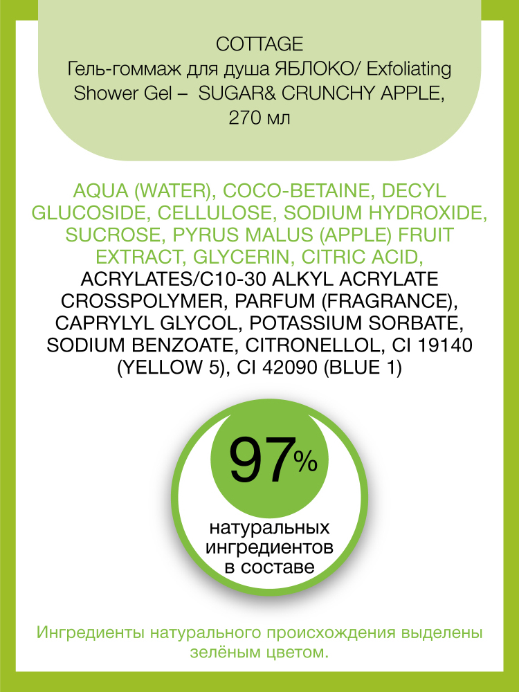 Cottage Гель-гоммаж для душа ЯБЛОКО/ Exfoliating Shower Gel – SUGAR& CRUNCHY APPLE, 270 мл