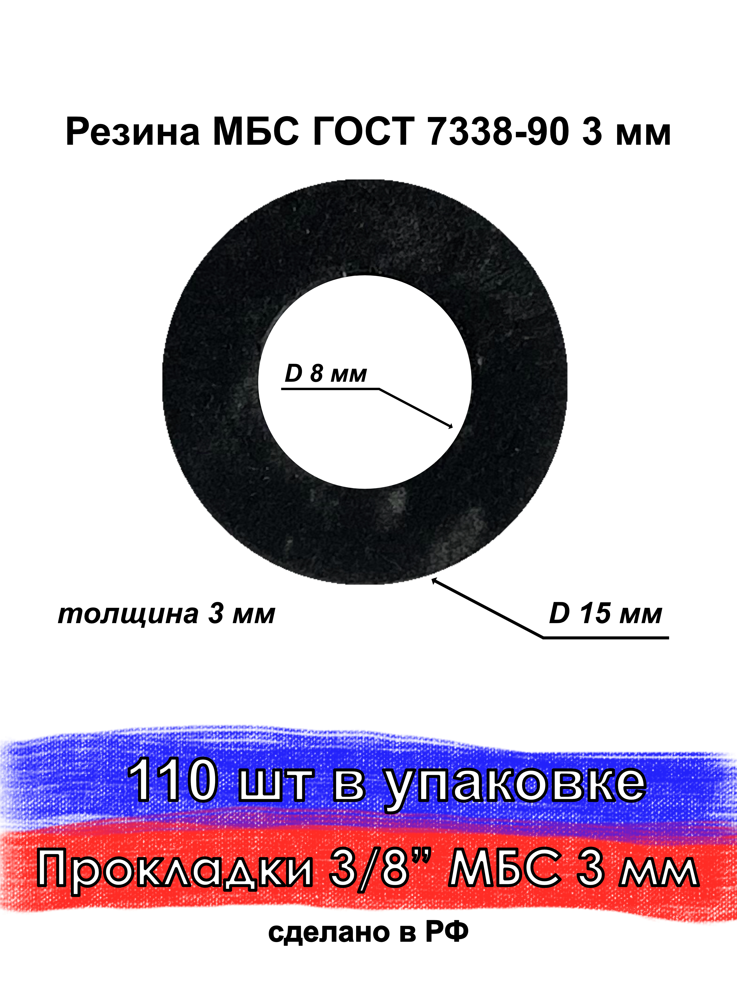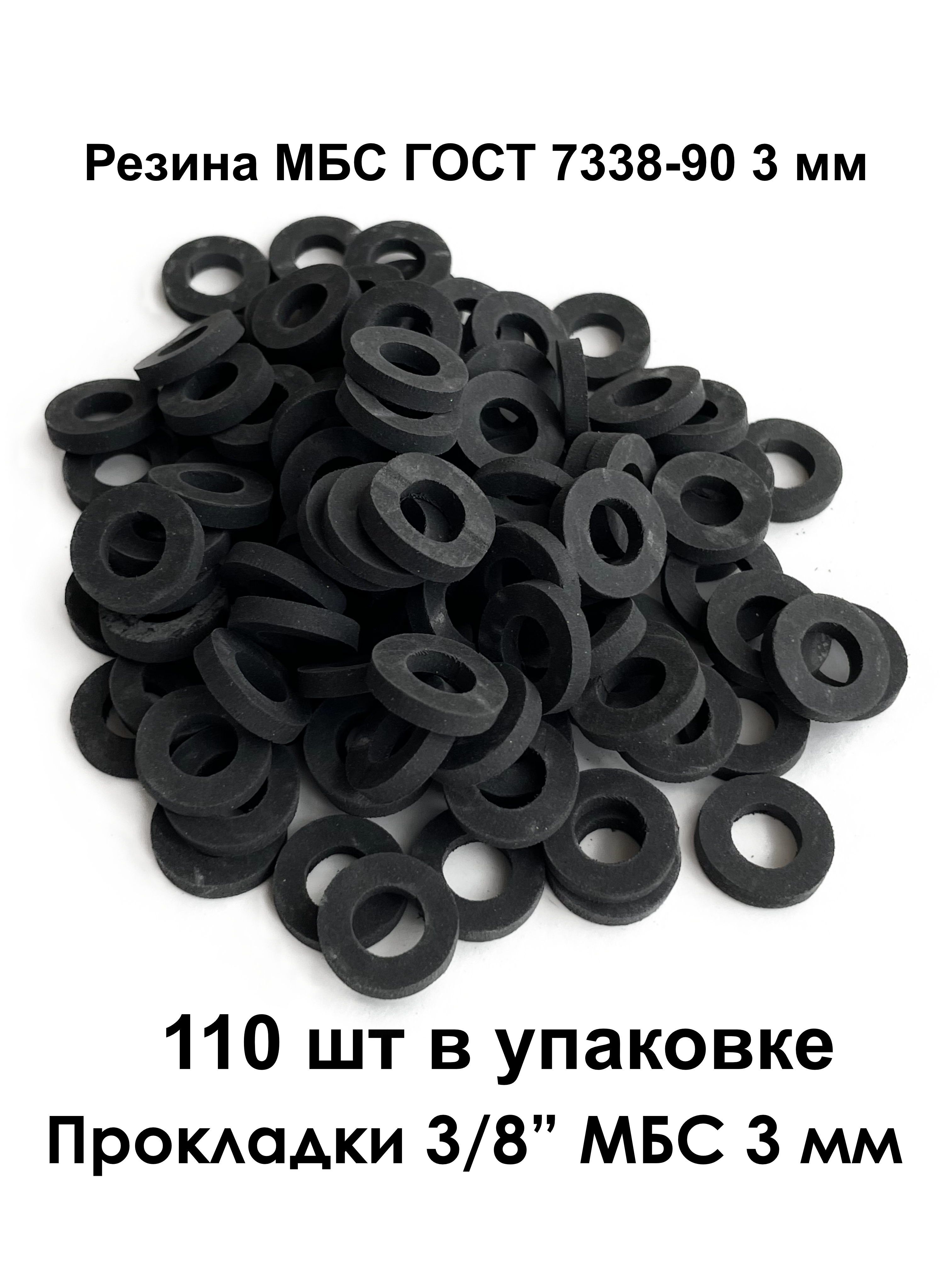 110 шт. Прокладка резиновая сантехническая 3/8 МБС 3 мм, для воды, для сантехники