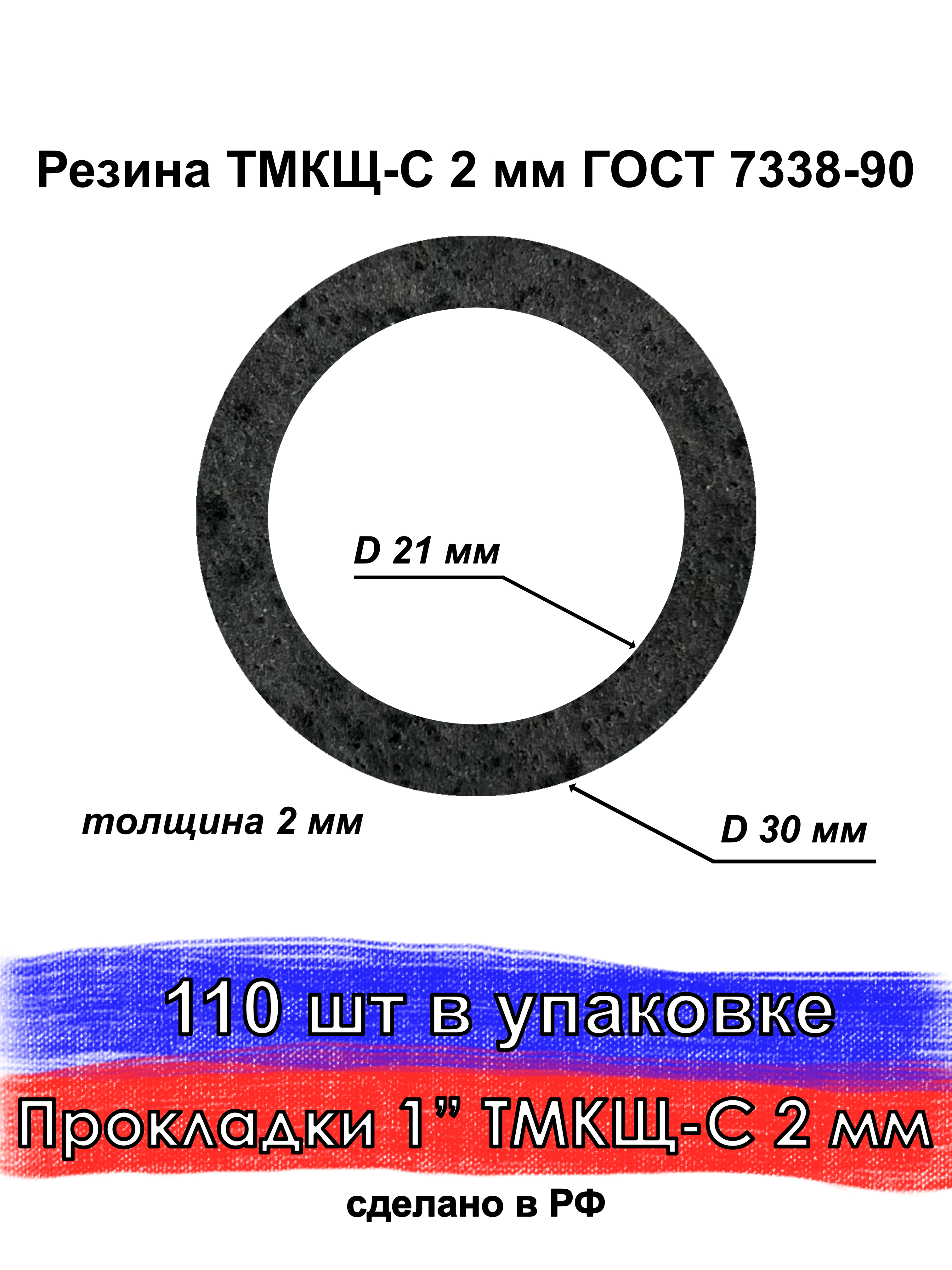 110 шт. Прокладка резиновая сантехническая 1 дюйм ТМКЩ 2 мм, для воды, для сантехники, крана, шланга