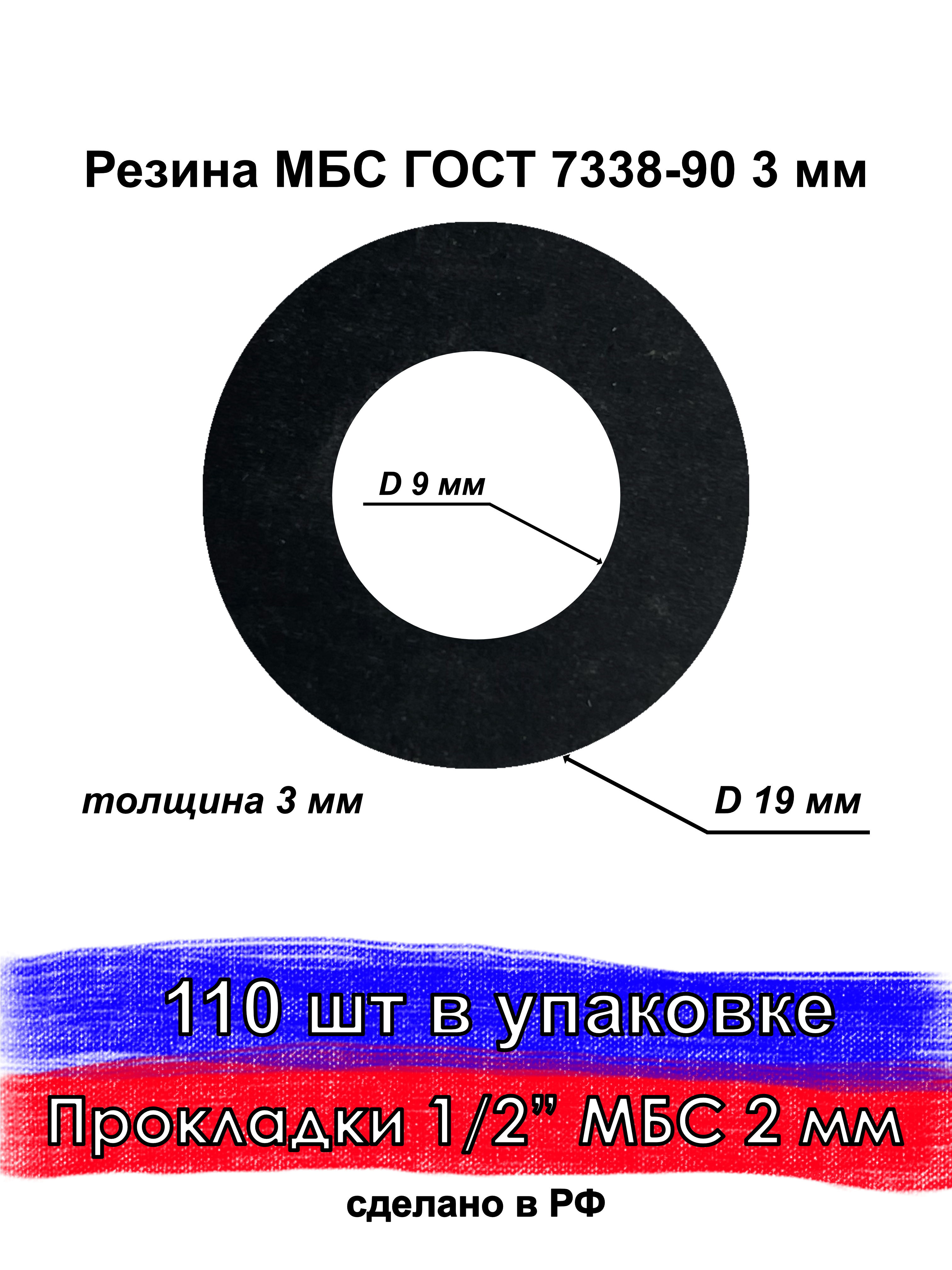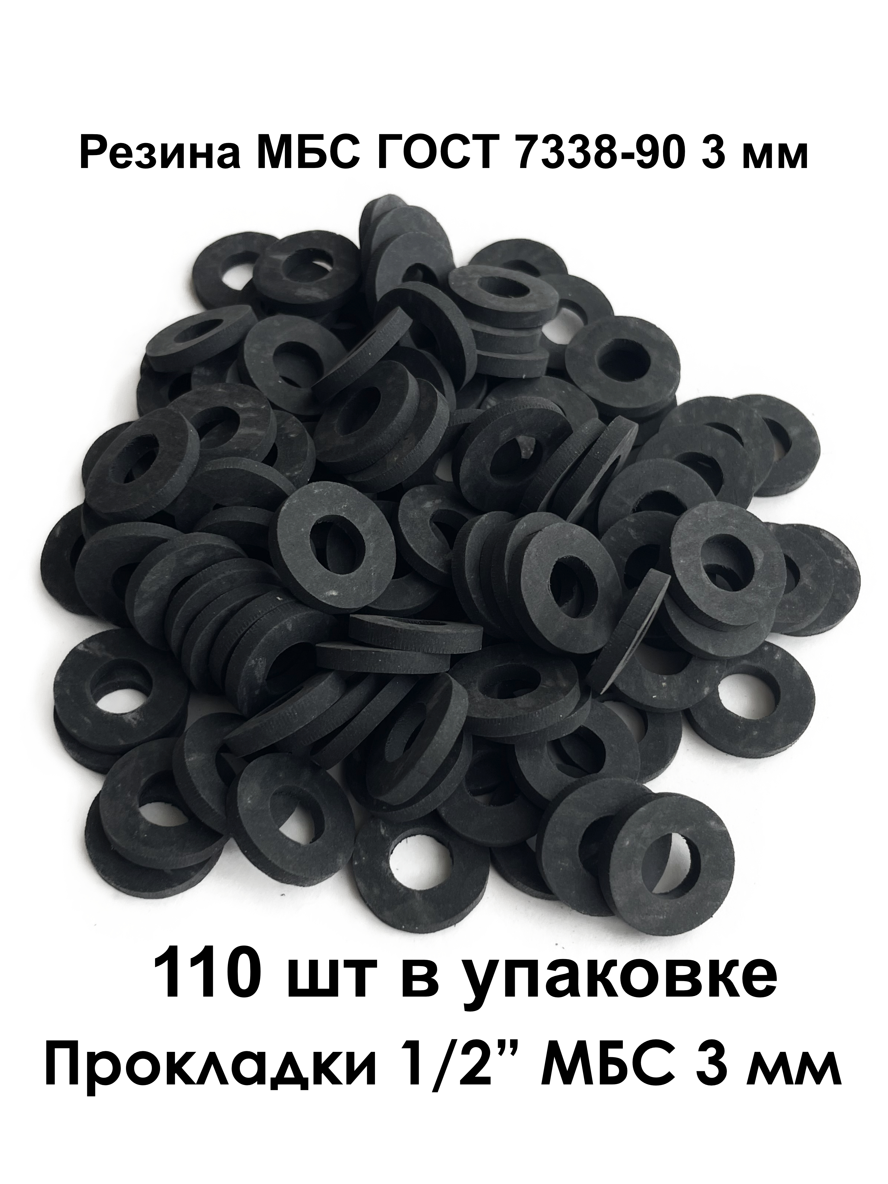 110 шт. Прокладка резиновая сантехническая 1/2 МБС 3 мм, для воды, для сантехники