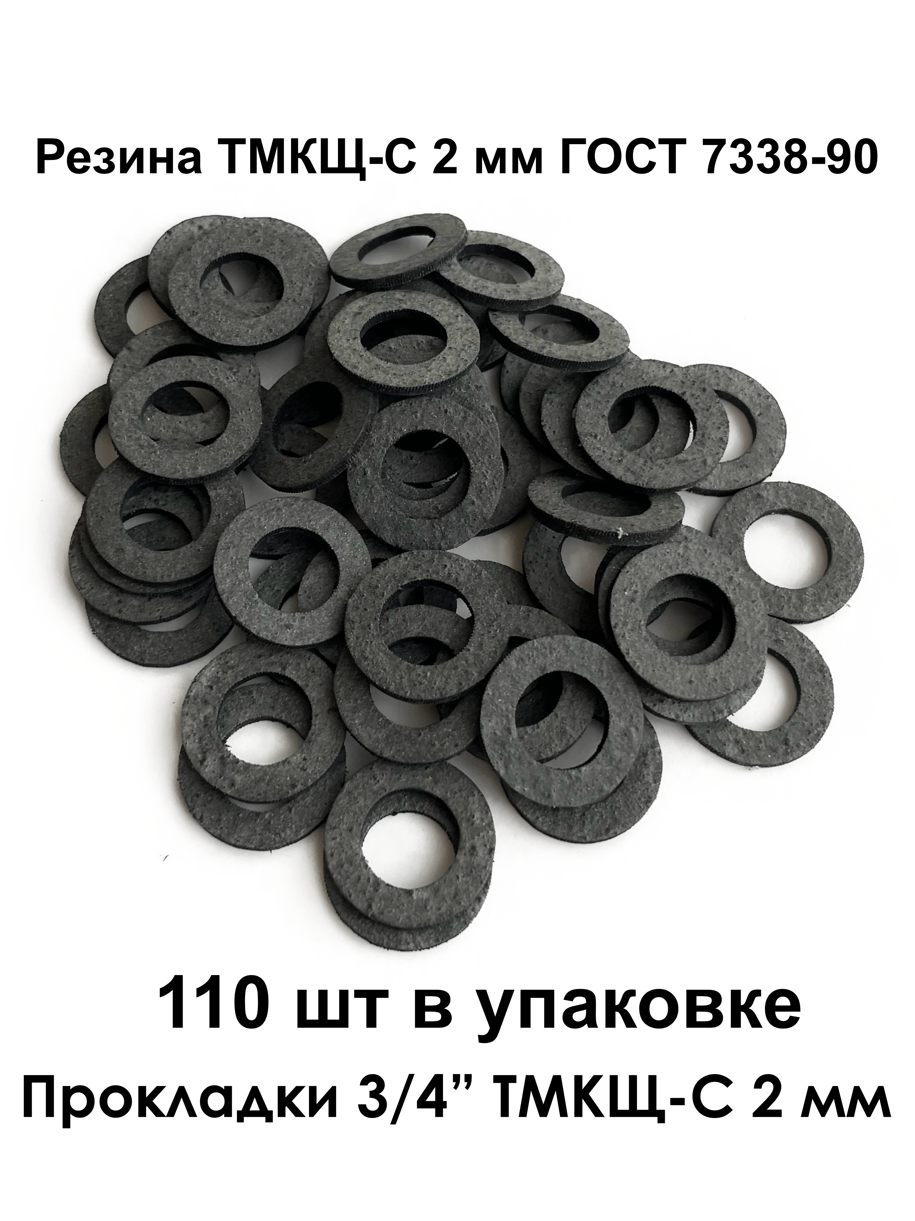 110 шт. Прокладка резиновая сантехническая 3/4 дюйма ТМКЩ 2 мм, для воды, для сантехники, крана, шланга