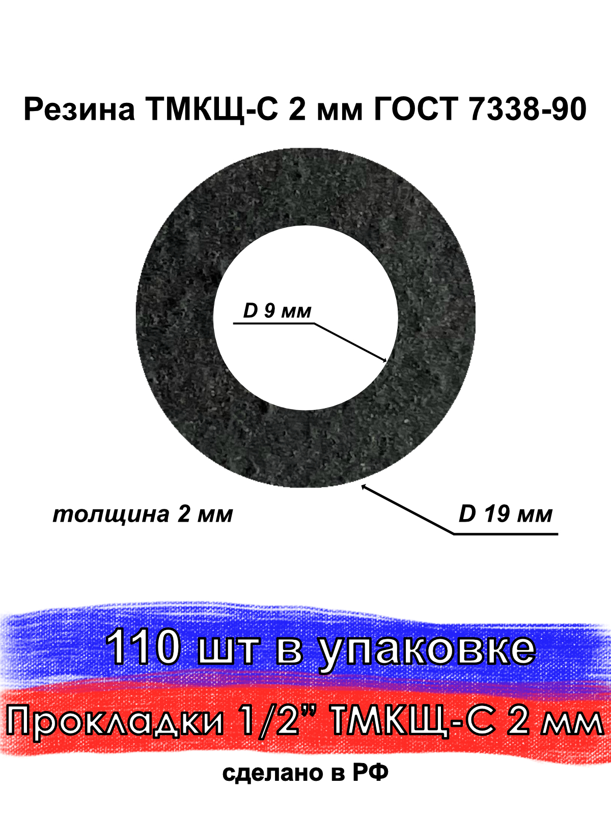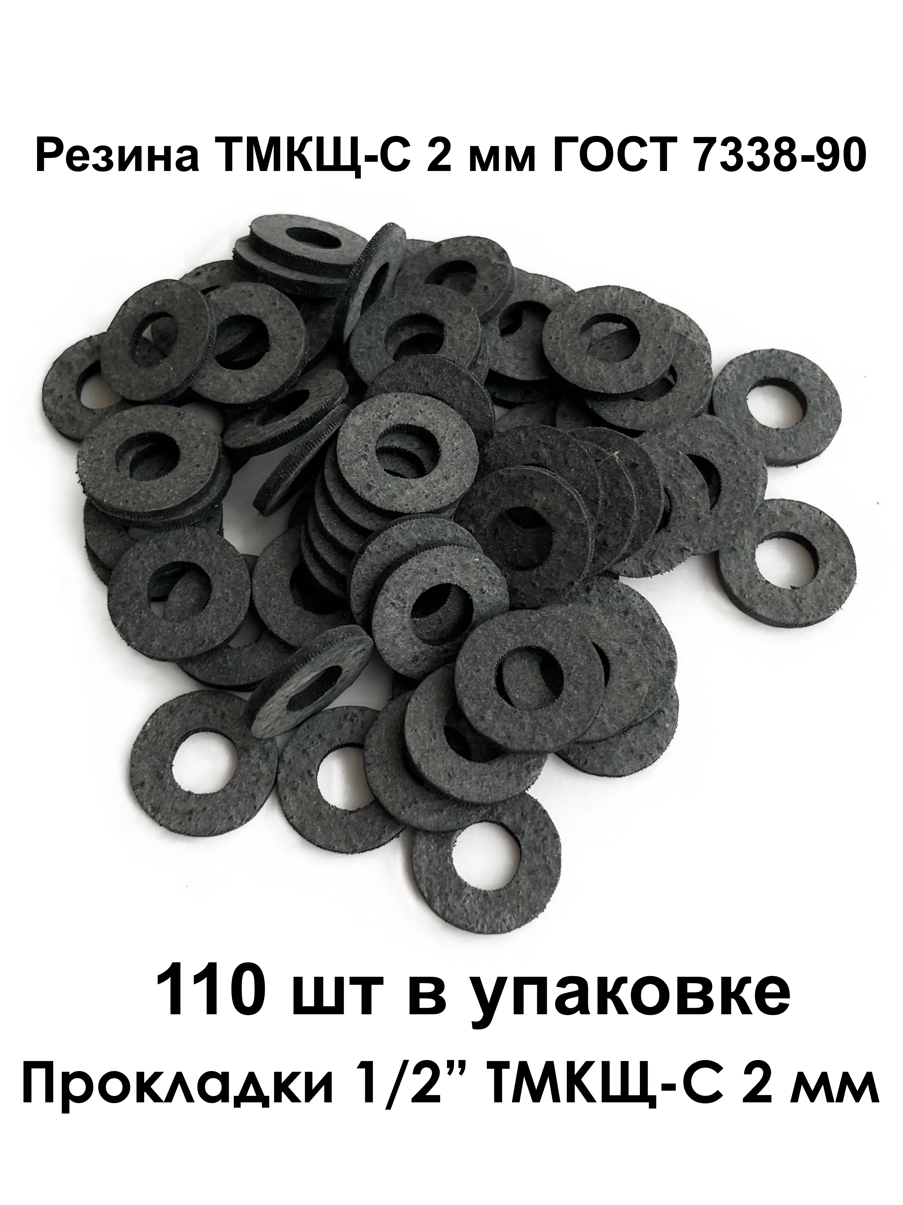 110 шт. Прокладка резиновая сантехническая 1/2 дюйма ТМКЩ 2 мм, для воды, для сантехники, крана, шланга