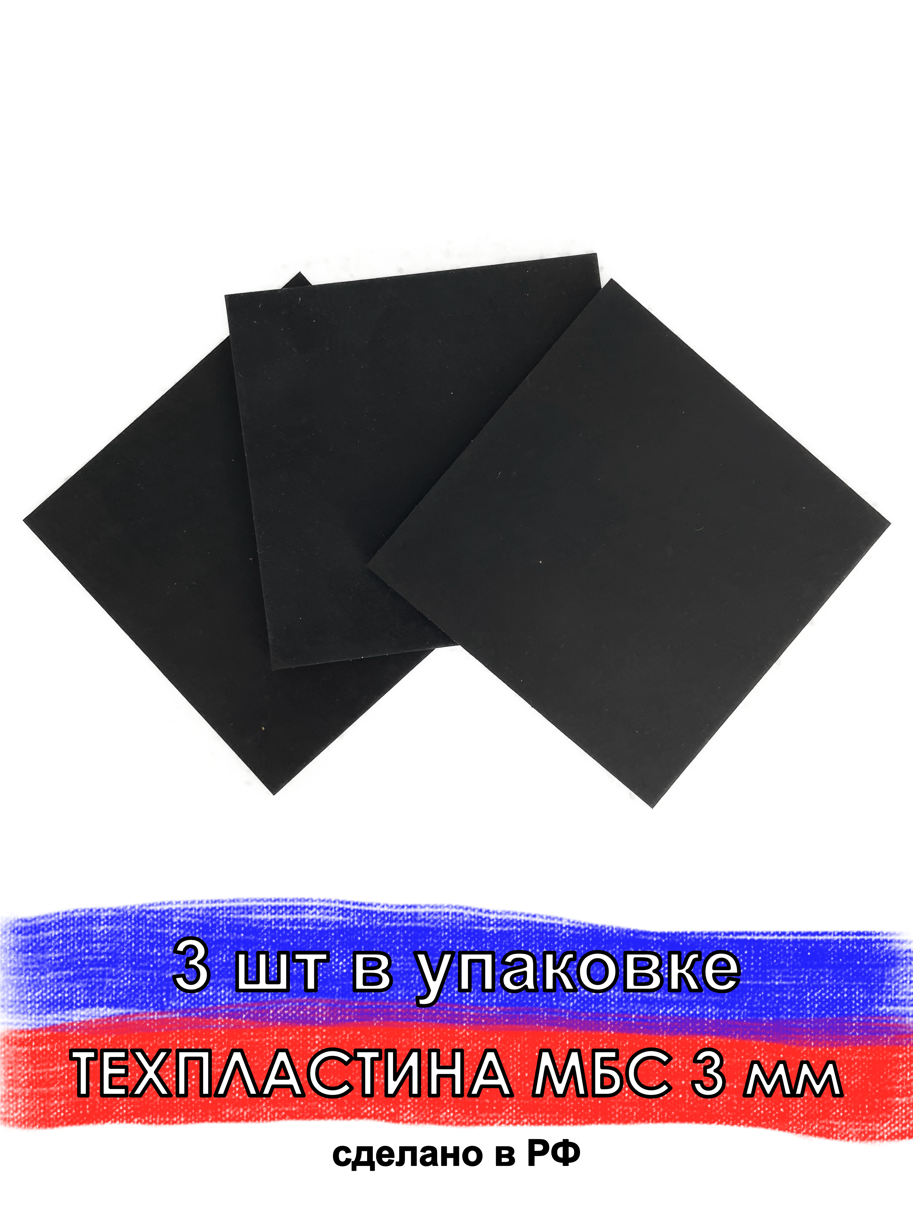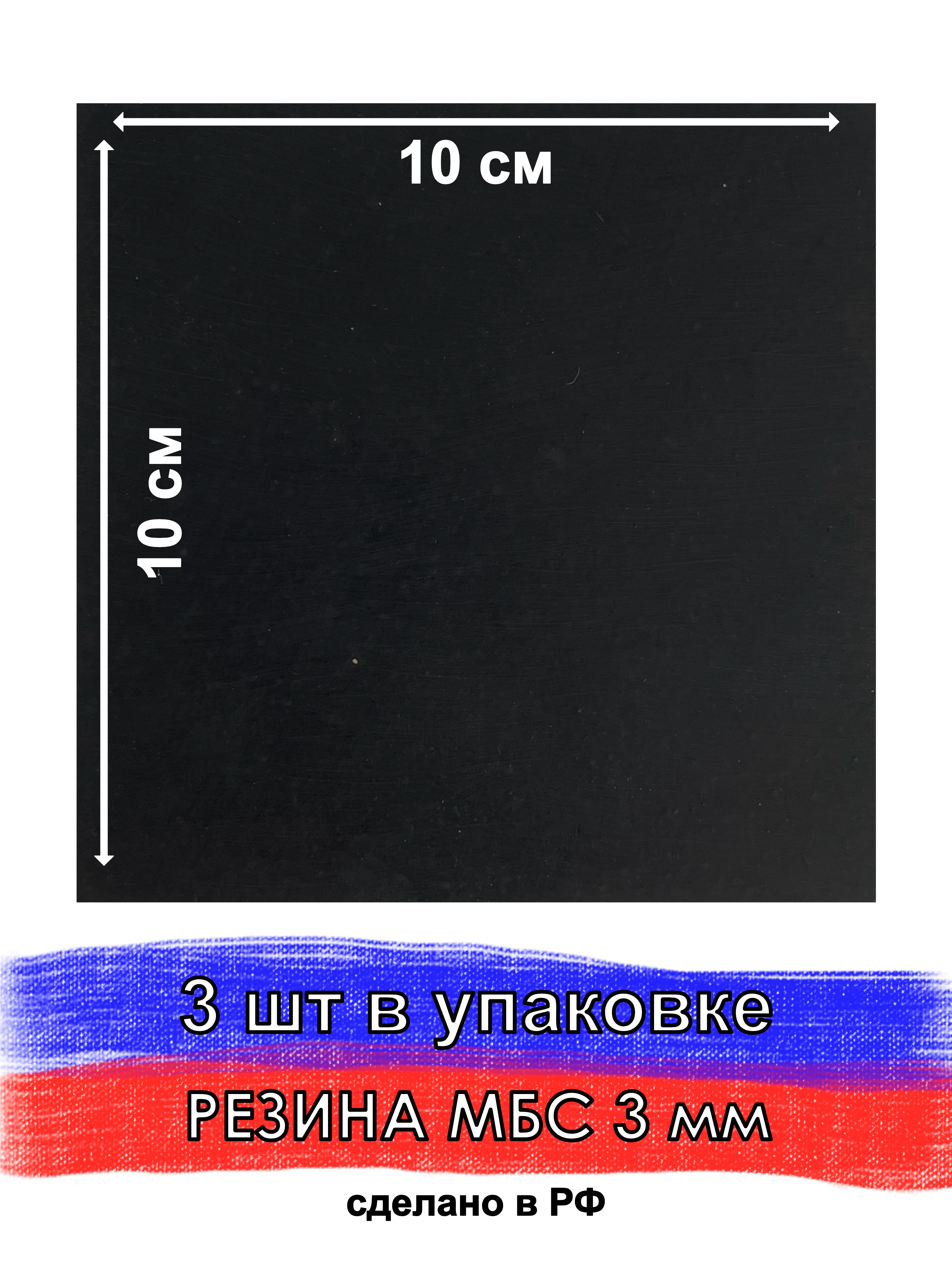 Техпластина МБС 3 мм, 100х100 мм, 3 шт, резина сантехническая листовая для изготовления прокладок