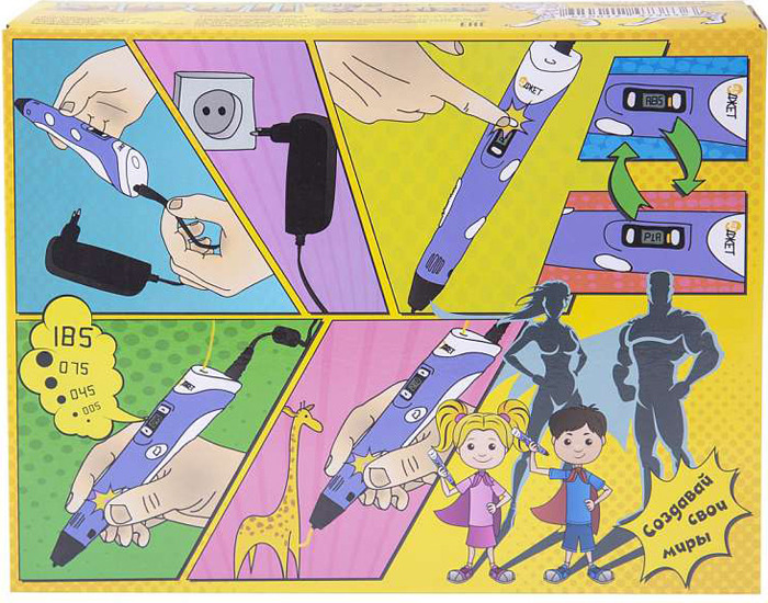 3D ручка 3Dali Plus Comics, ABS и PLA, (KIT FB0021M), трафарет + пластик