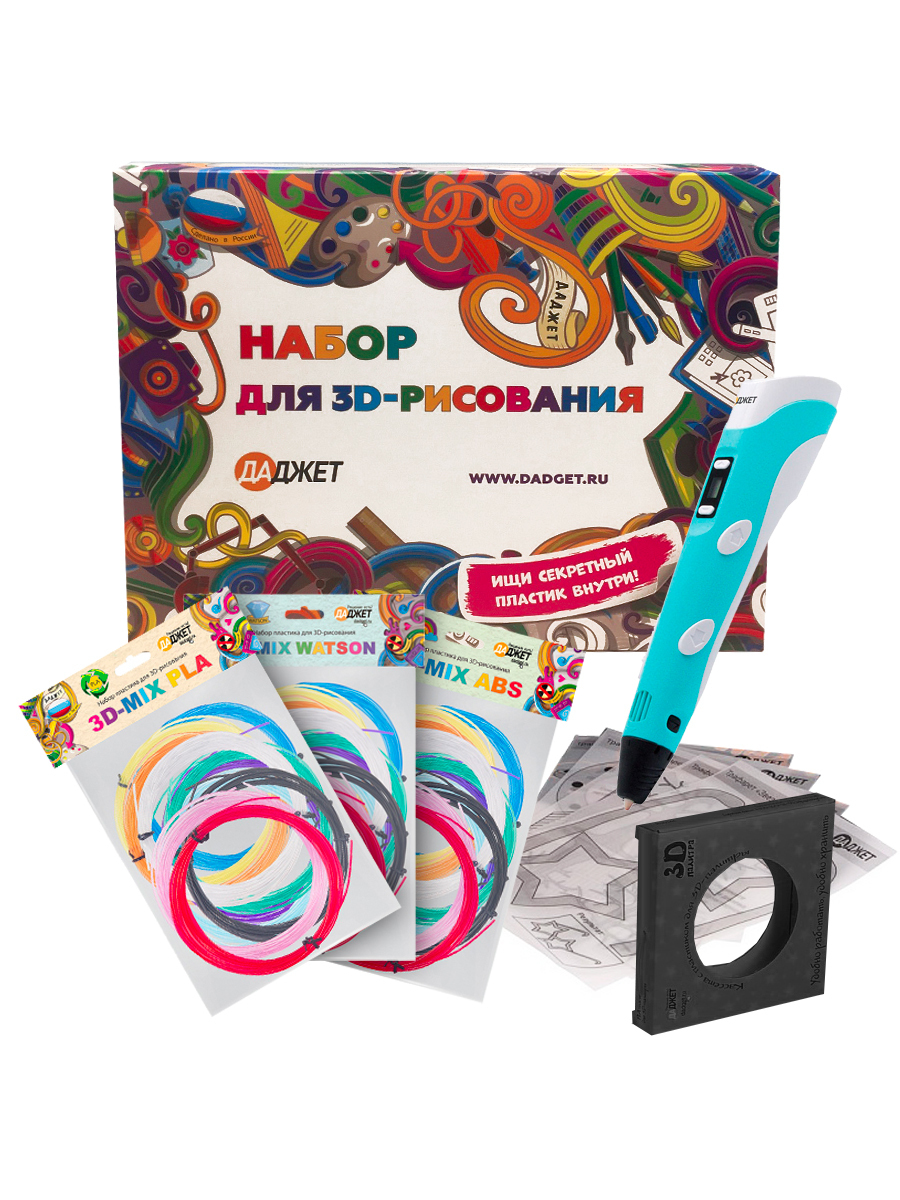 3D ручка 3Dali Plus, 3д ручка с набором пластика, 3d ручка с набором пластика и трафаретами