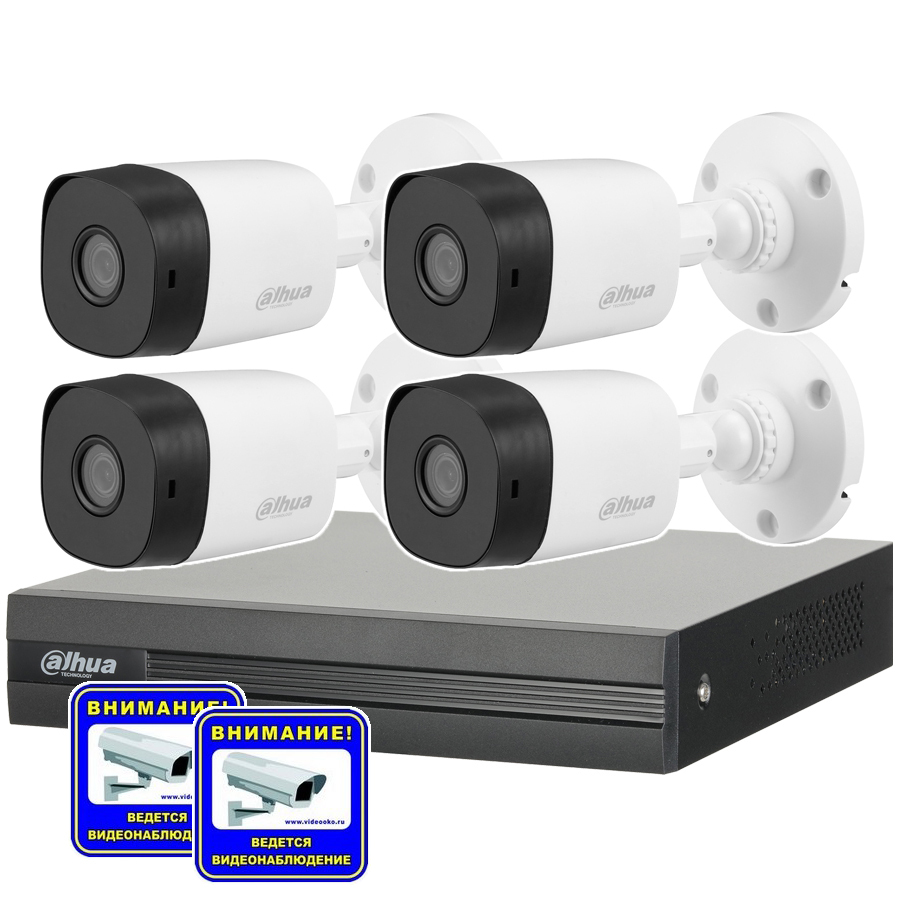 Комплект Full HD Dahua EZ видеонаблюдения на 4 уличные видеокамеры для дома или дачи