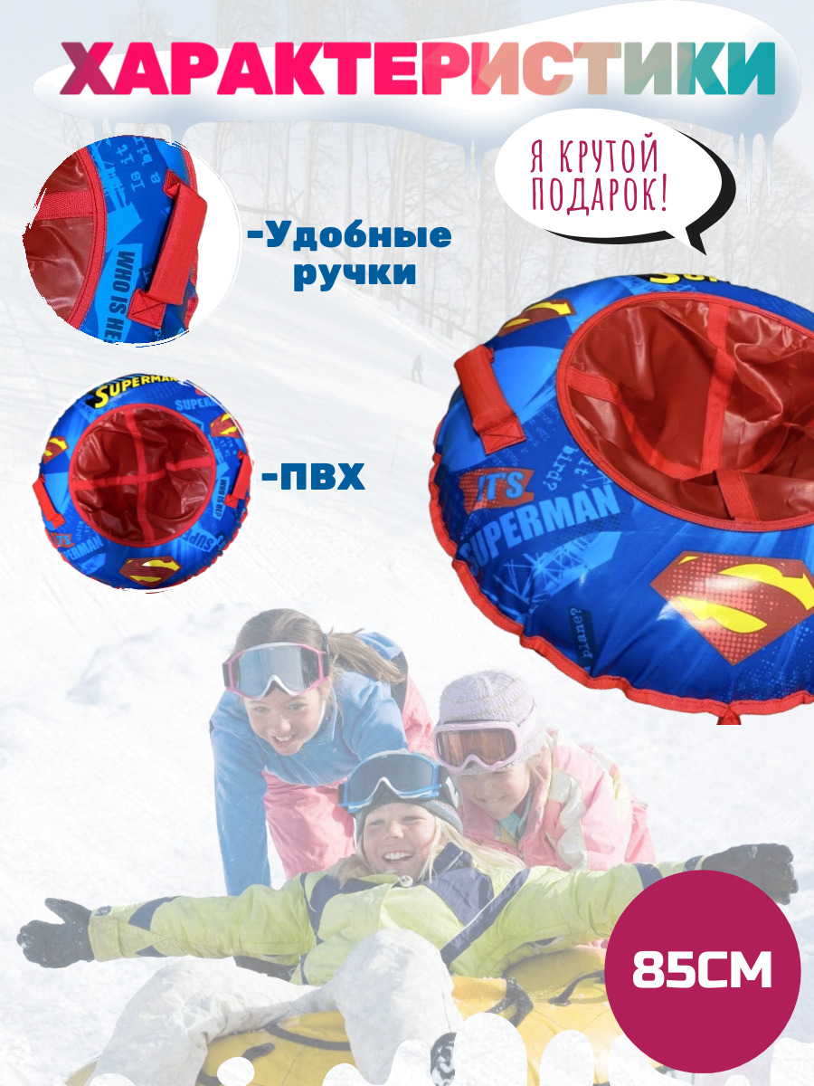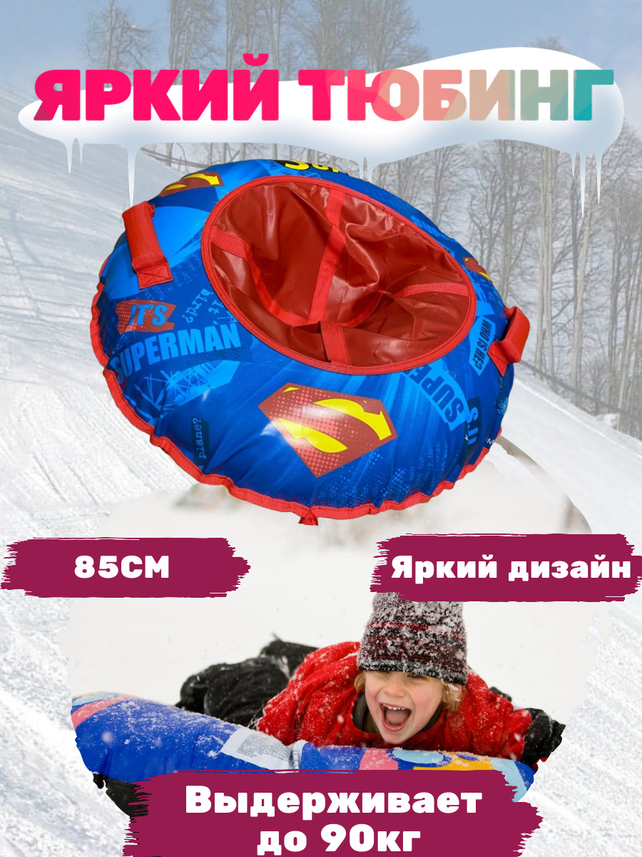 Тюбинг Супермен / Ватрушка / для детей / с камерой 85 см, до 90 кг, до -35C / подарок на Новый год / ребенку