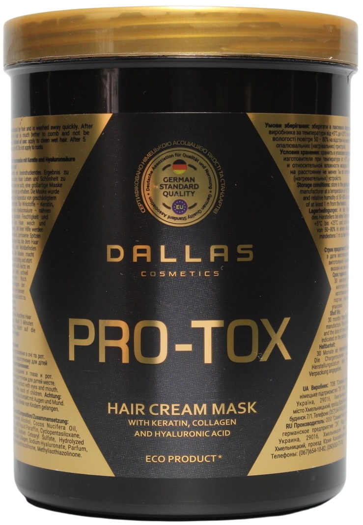 Dallas Крем-маска для волос с кератином, коллагеном и гиалуроновой кислотой Pro-Tox Mask, 1000 мл