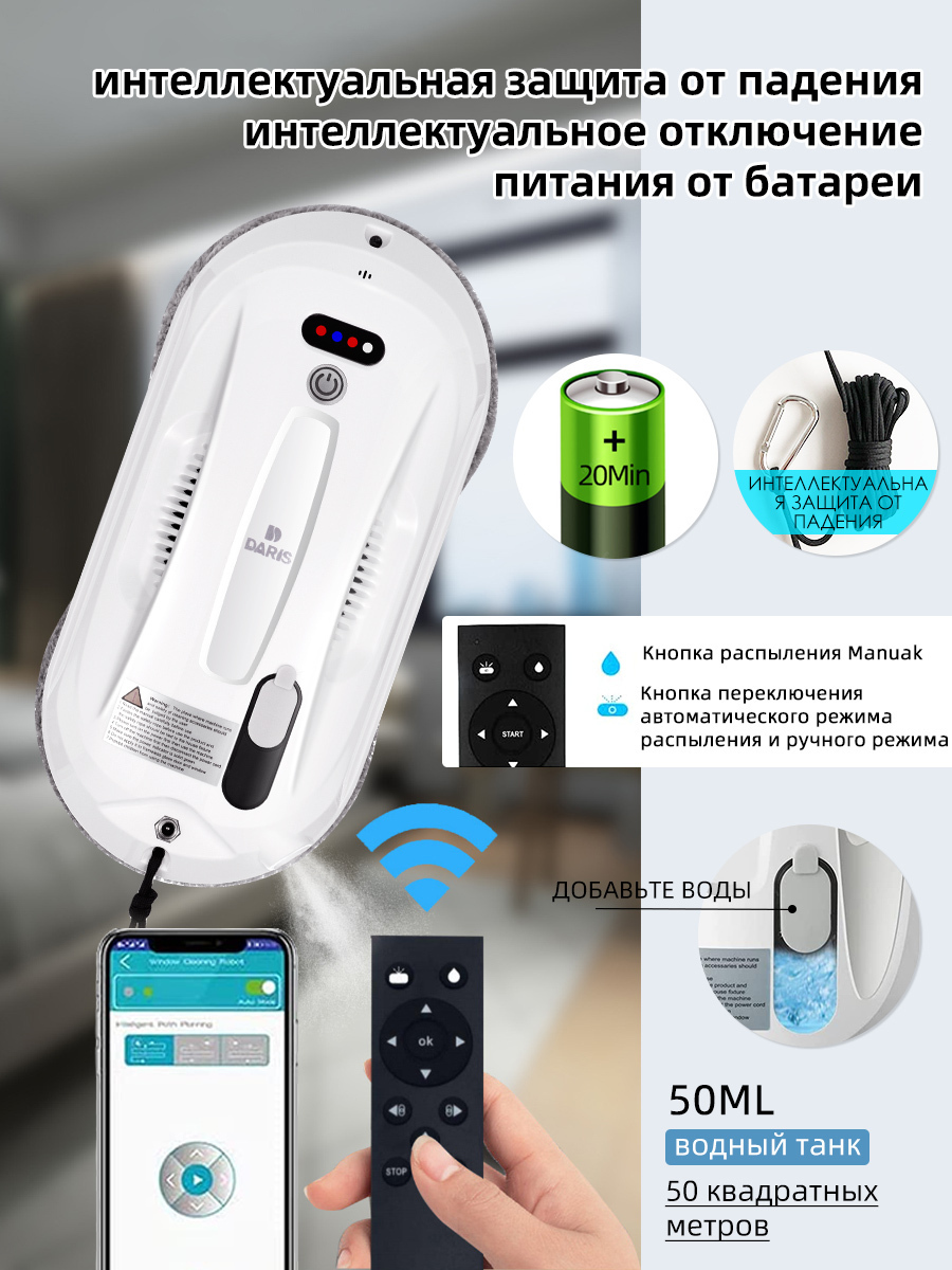 Робот для мойки окон Daris DR-FE102, белый