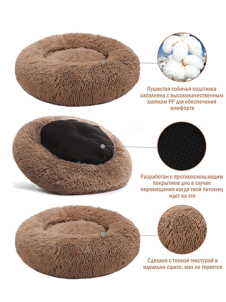 DARIS Мягкая лежанка для кошек и собак,Большая собачья кровать,100*100cm,Темно-серый