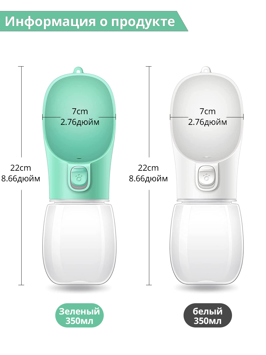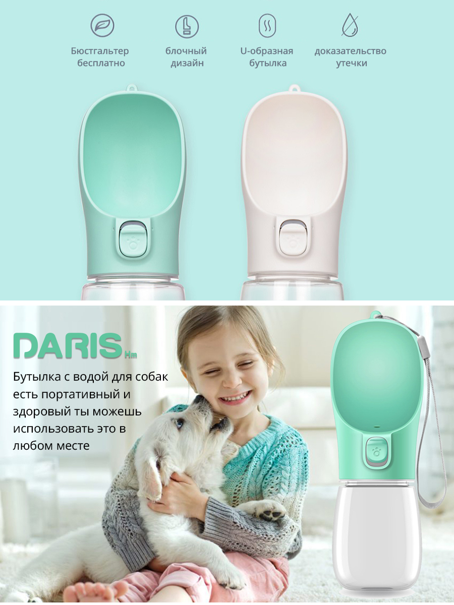 DARIS Портативная поилка для собак, для маленьких и больших собак, поилка для собак,белый,350 мл
