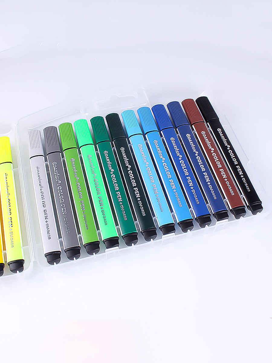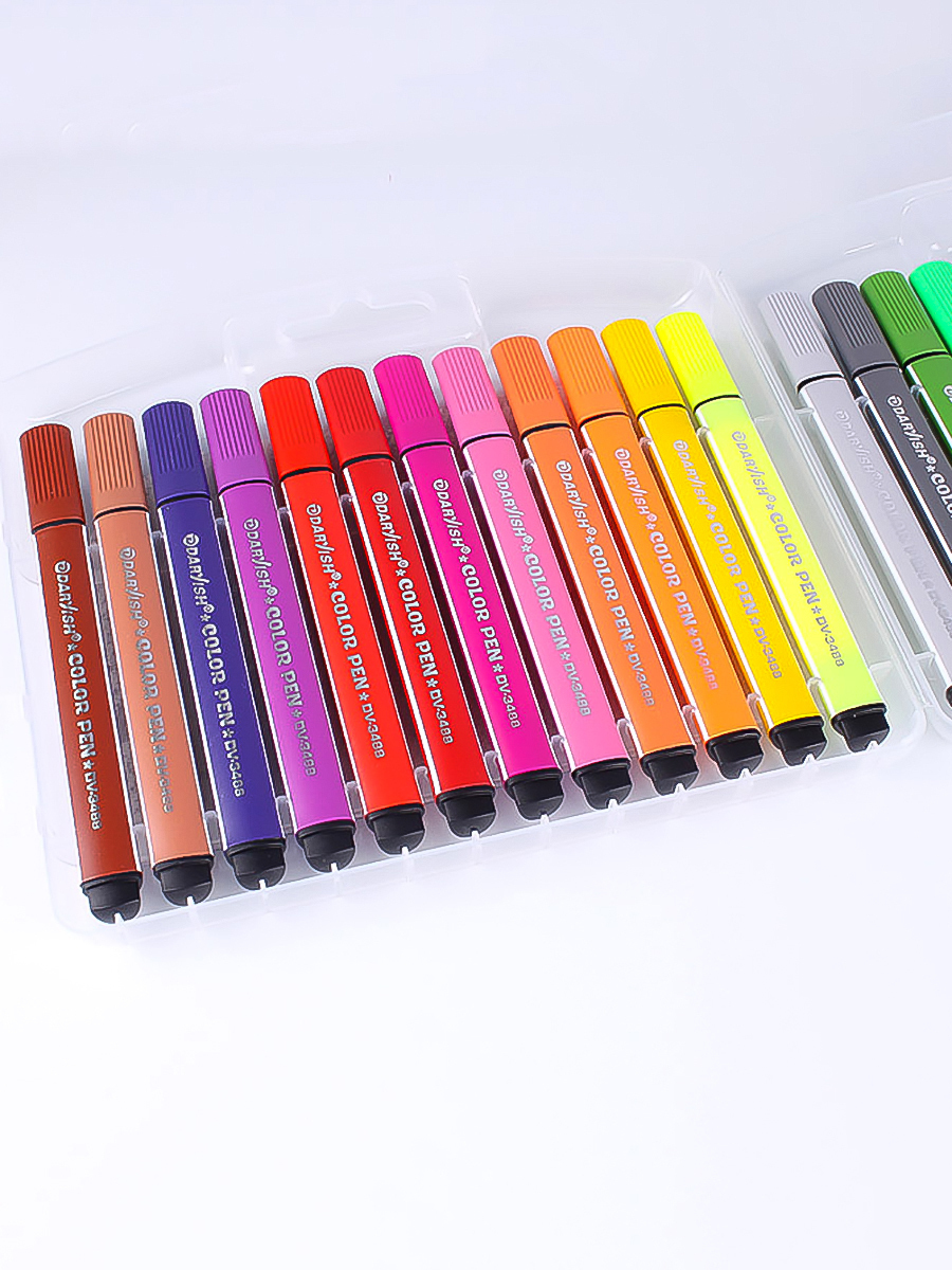 Фломастеры 24 цвета в пенале треугольные толстые / Darvish