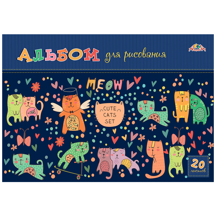 Альбом для рисования А4 20 листов на гребне, "Разноцветные кошки", "АппликА" артикул DV-C0224-47.