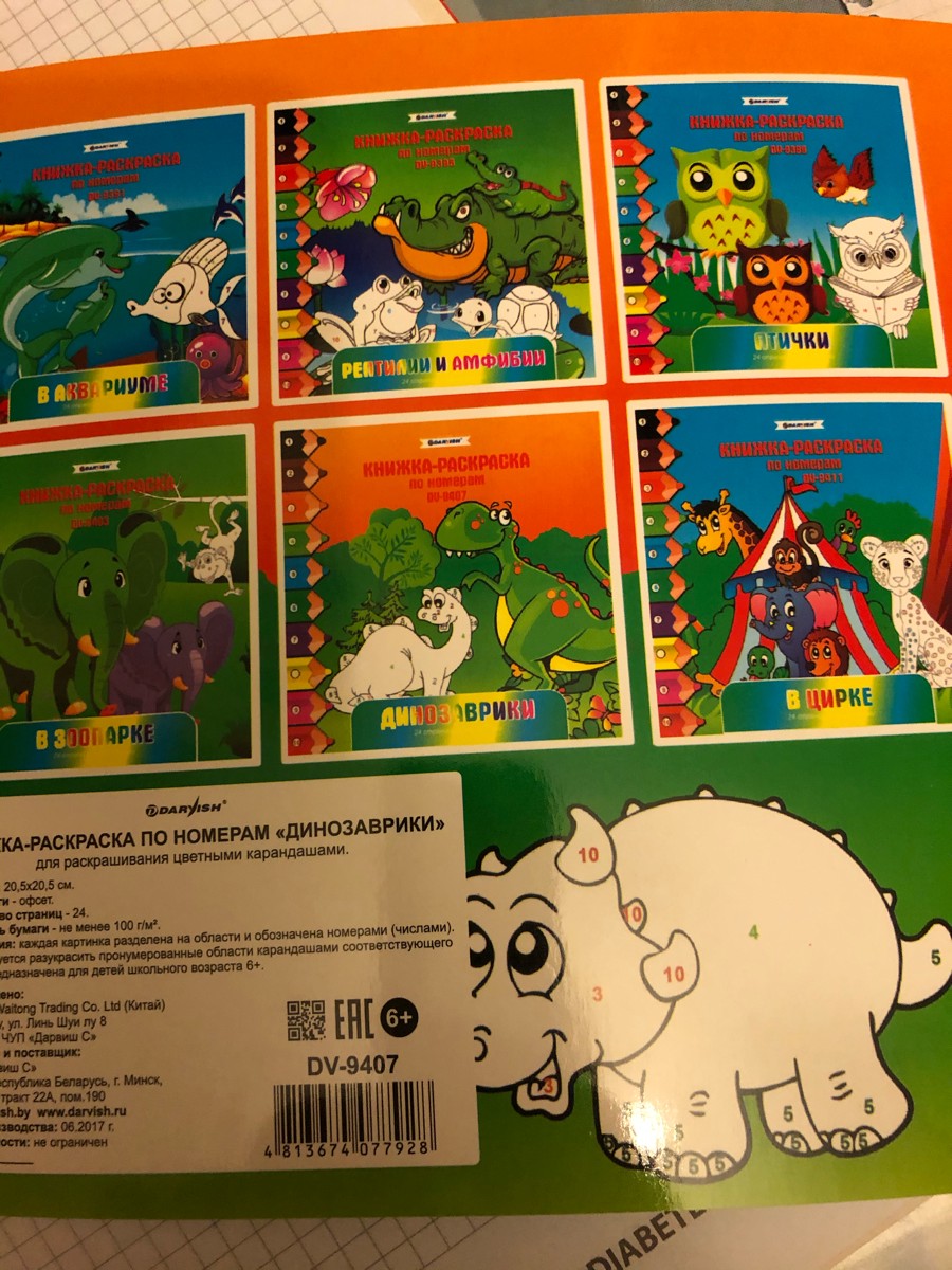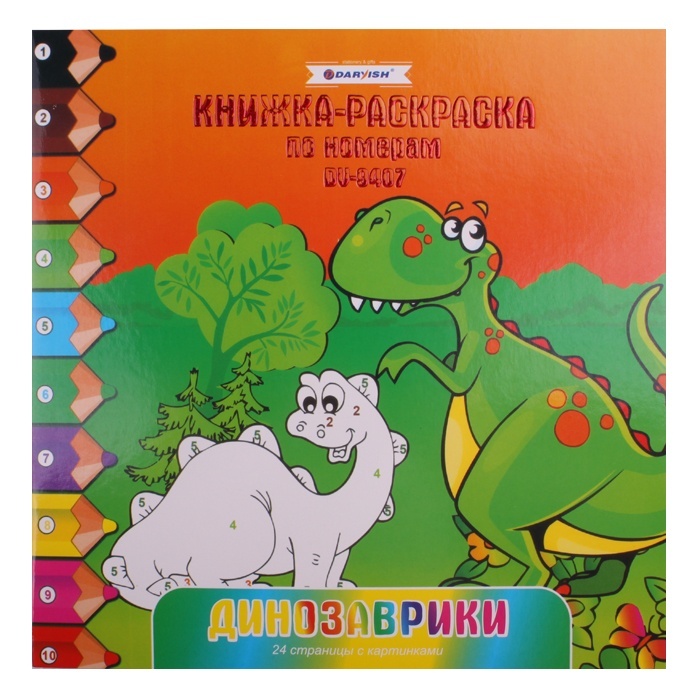 Раскраска по номерам "Динозаврики" 24 страницы "Darvish", 20,5*20,5 см, артикул DV-9407