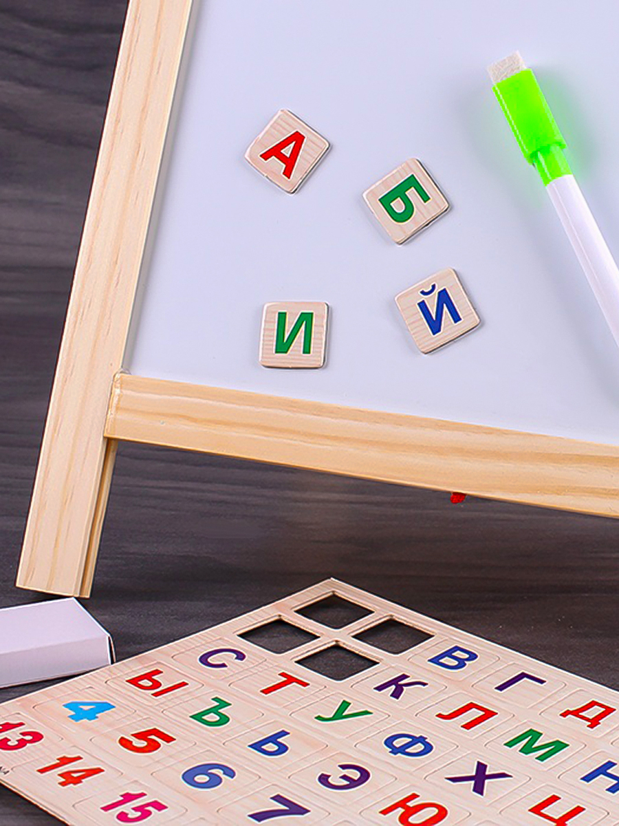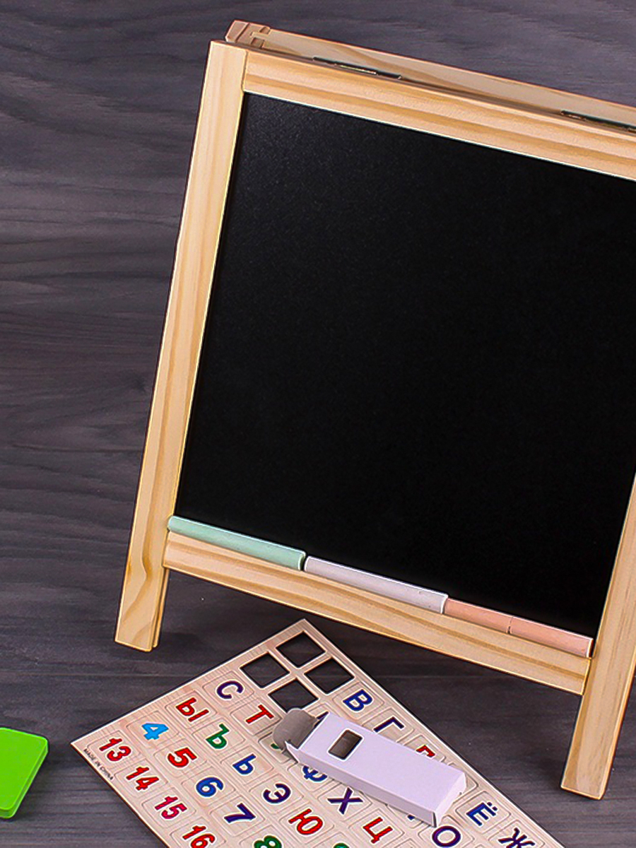 Доска для рисования двусторонняя (27*27 см) + мелки + губка + магниты + маркер / Darvish