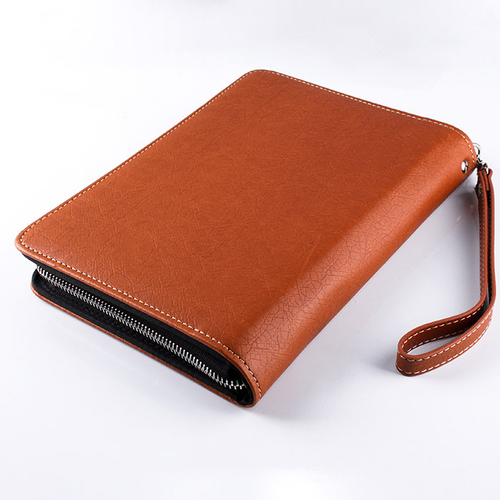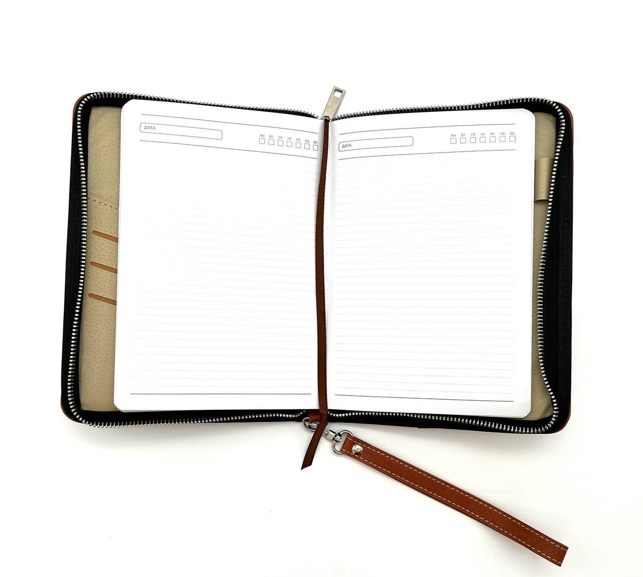 Ежедневник недатированный с ремешком на молнии. А5, 120 л, экокожа, цвет коричневый
