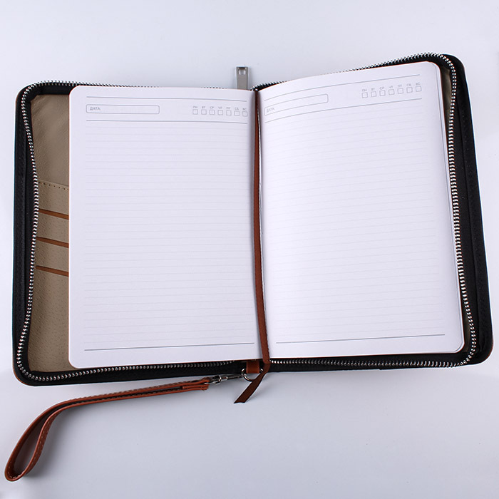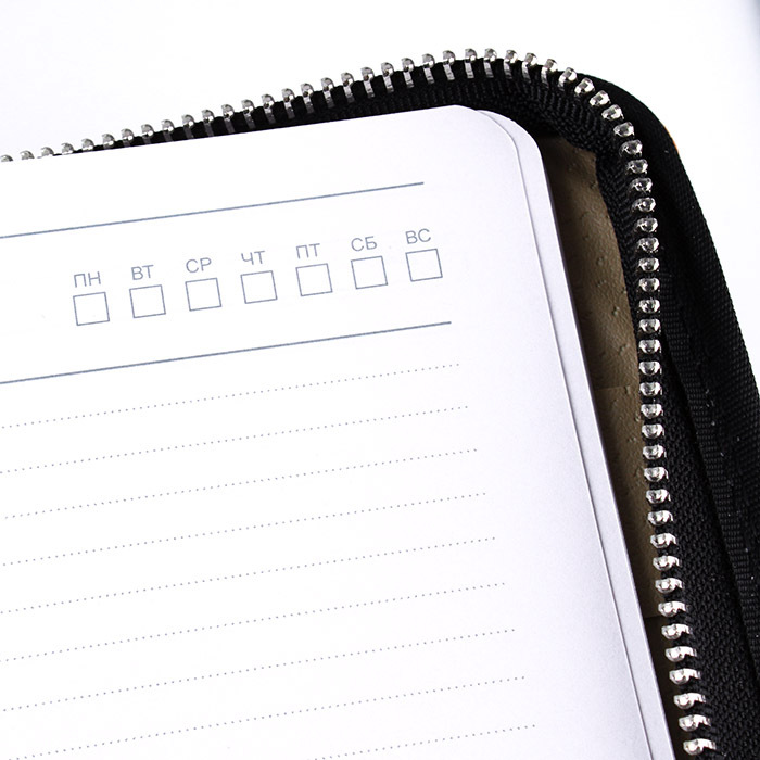 Ежедневник недатированный с ремешком на молнии. А5, 120 л, экокожа, цвет черный