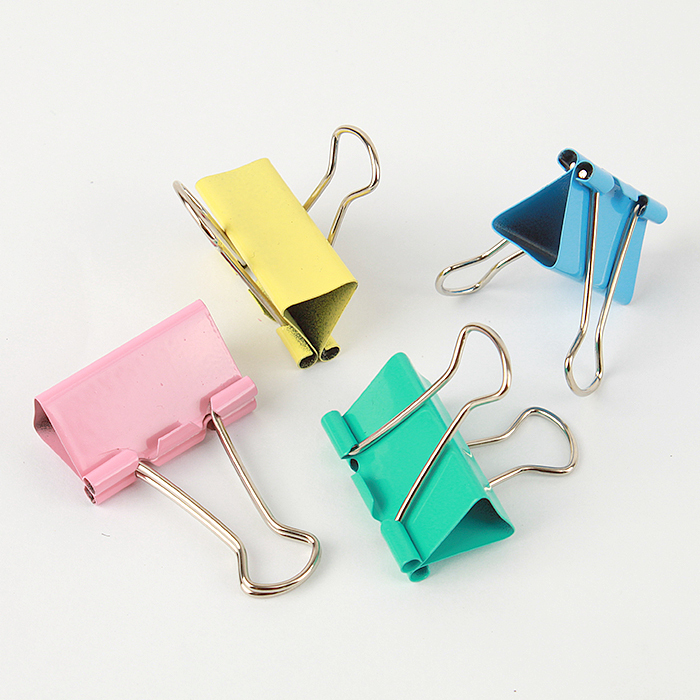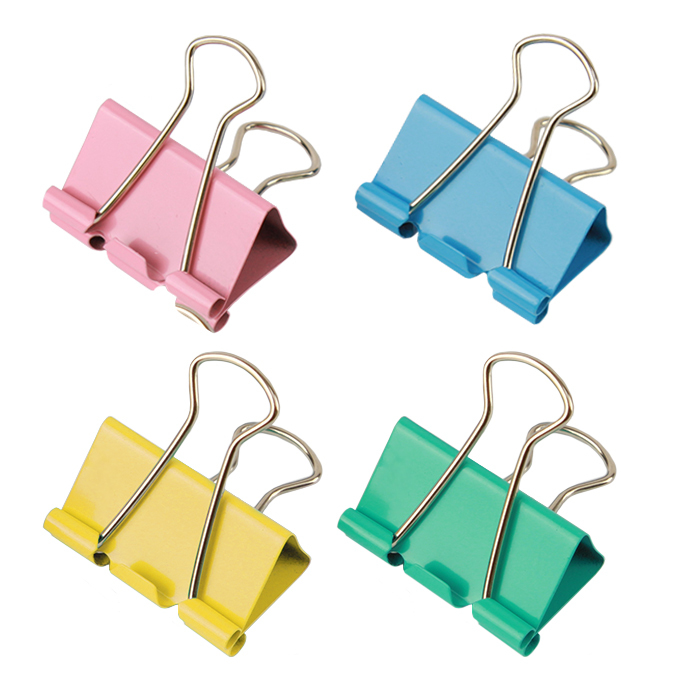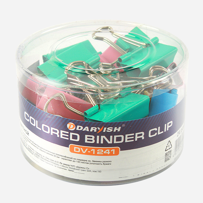 Зажимы для бумаг 32мм цветные 24 штук в пластиковой тубе / прищепки цветные металлические