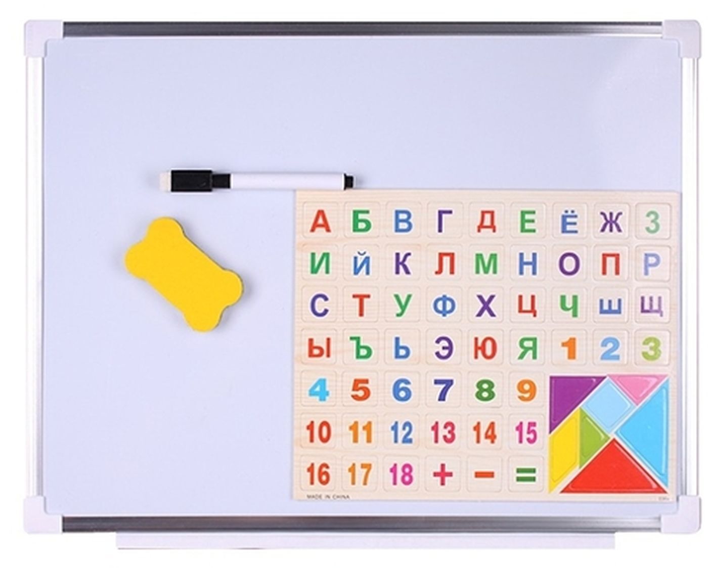 Доска для рисования двусторонняя маркерно-меловая (35х25 см) + губка + маркер + 2 мелка / Darvish