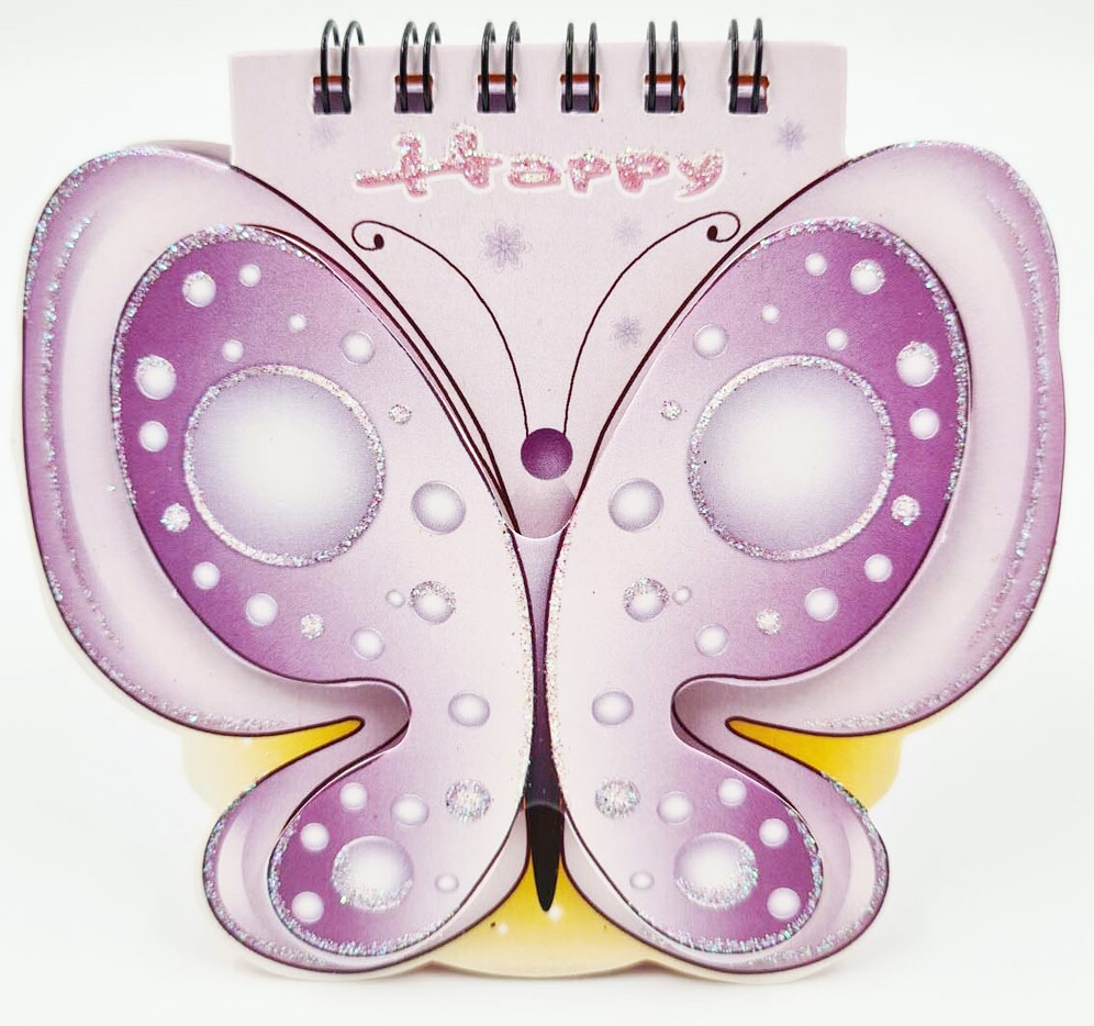 Блокнот на спирали с фигурной высечкой Бабочка, лиловая, А7 50 листов, "Darvish", DV-7101