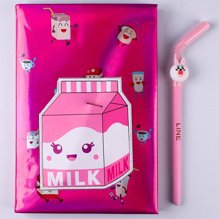 Блокнот голография с аппликацией "Пакет молока", с ручкой, 14*21см 80л, "Darvish", DV-12848