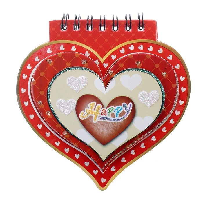Блокнот на спирали с фигурной высечкой Сердечки, красное Happy, А7 50 листов, "Darvish", DV-7107