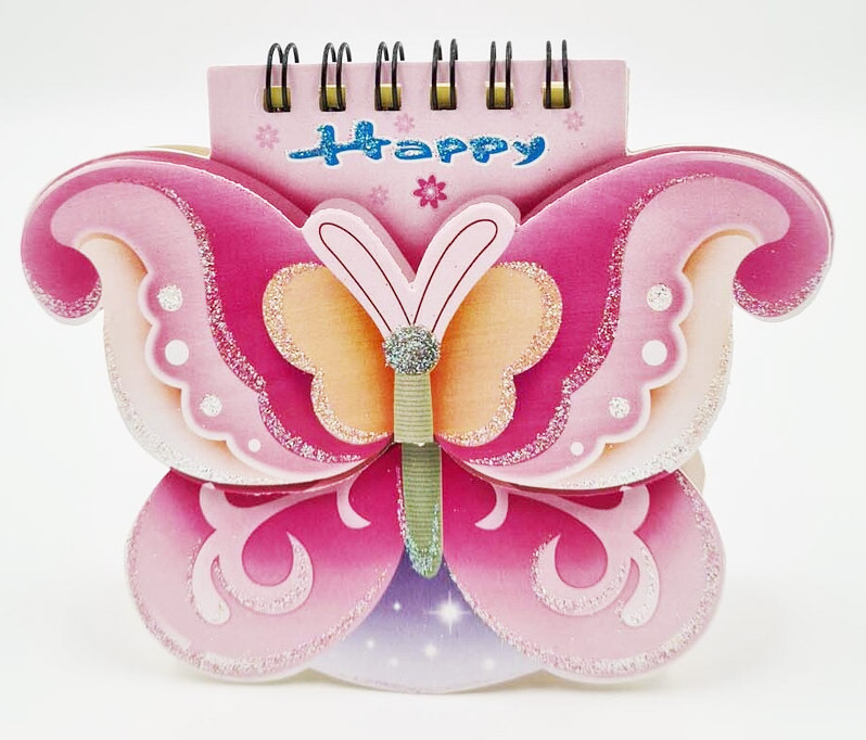 Блокнот на спирали с фигурной высечкой Бабочка, красная, А7 50 листов, "Darvish", DV-7101
