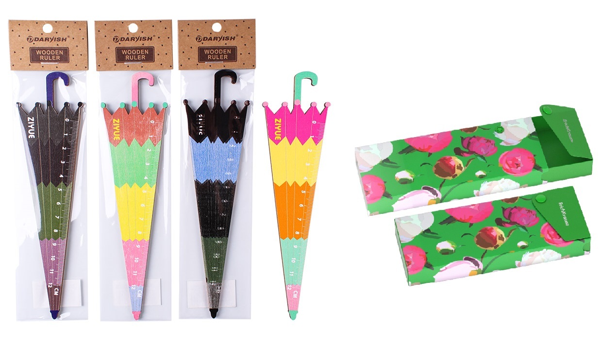 Набор линеек деревянных 12 см "ЗОНТИК"(4шт)+ПОДАРОК пластиковый выдвижной пенал для линеек