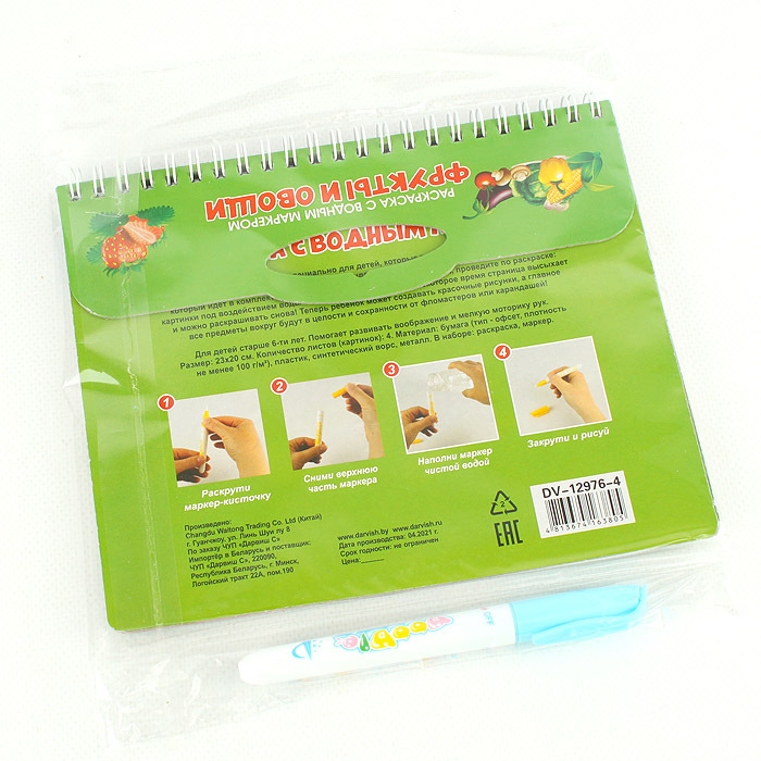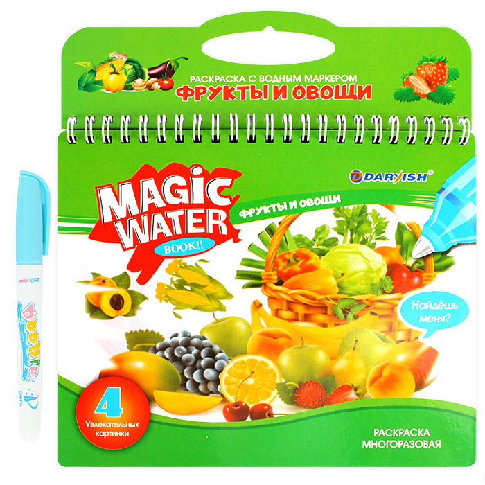 Раскраска Darvish Фрукты и овощи, с водным маркером, DV-12976-4