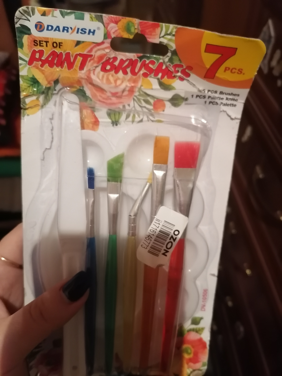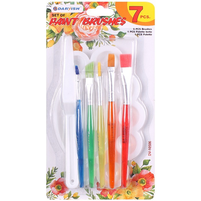 Набор кистей/ Кисти синтетика + палитра + мастихин, 7шт/уп, Darvish